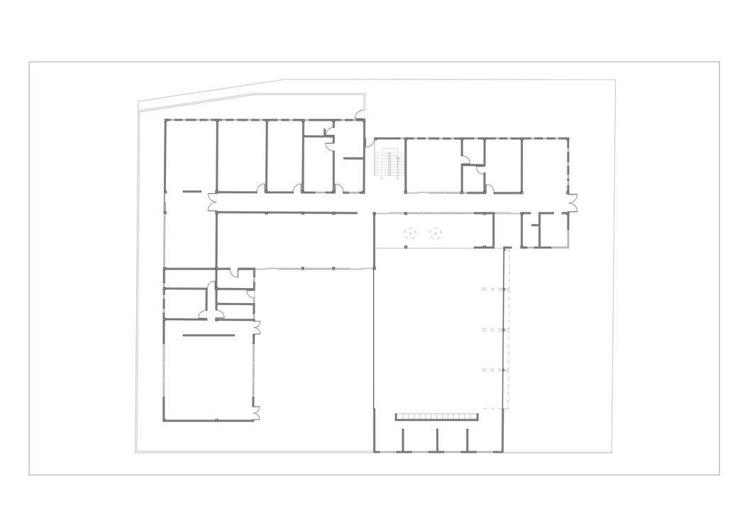 Zona de banderas Recepción / Sala de espera Administración almacén Oficinas Vigilancia SS.HH Hall ingreso secundario Zona de equipos Zona de tubos Cocina / Comedor Enfermería Lavandería Cuarto de conferencias Sala de instrucción SUM