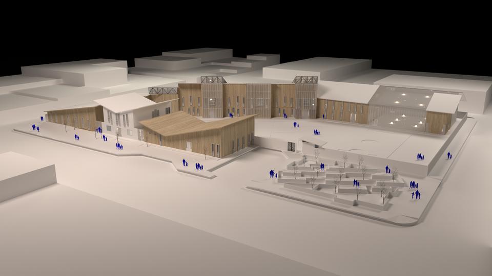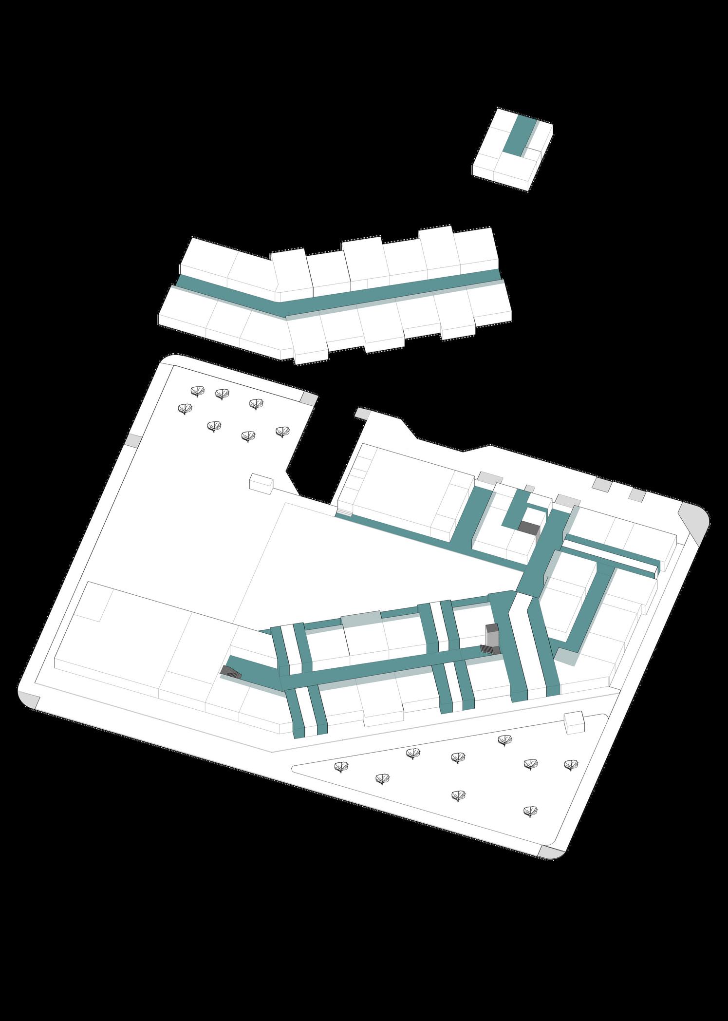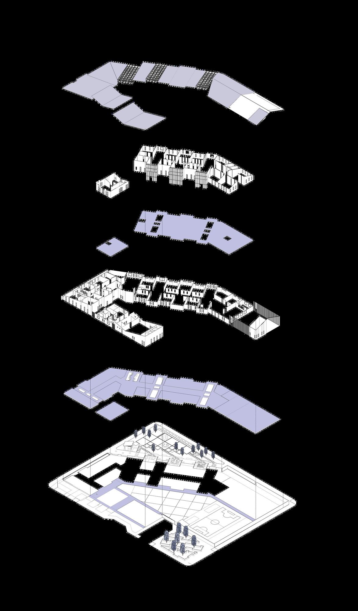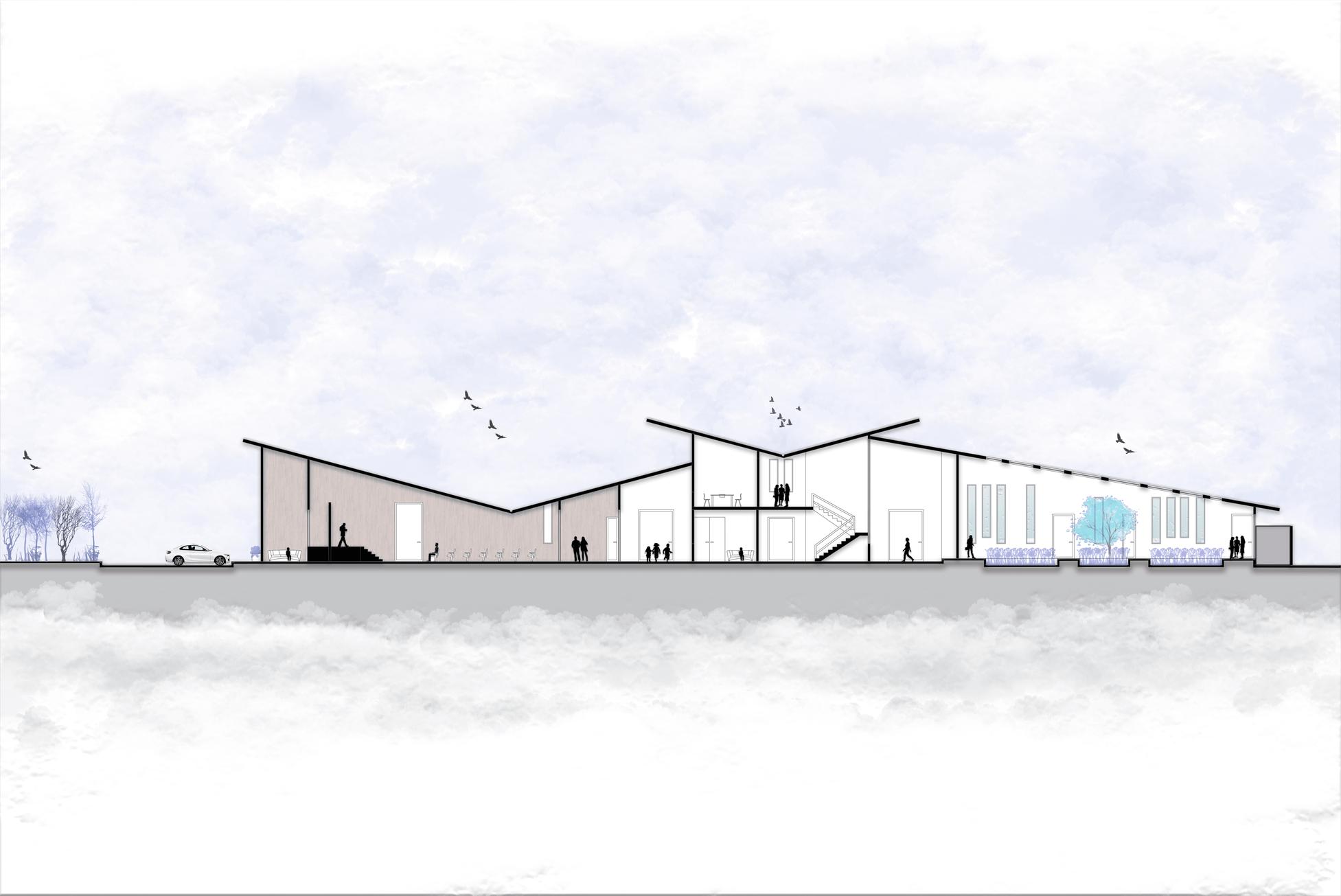 La forma del proyecto trata de envolver casi por completo al terreno, buscando protegerse de los fuertes vientos y heladas.