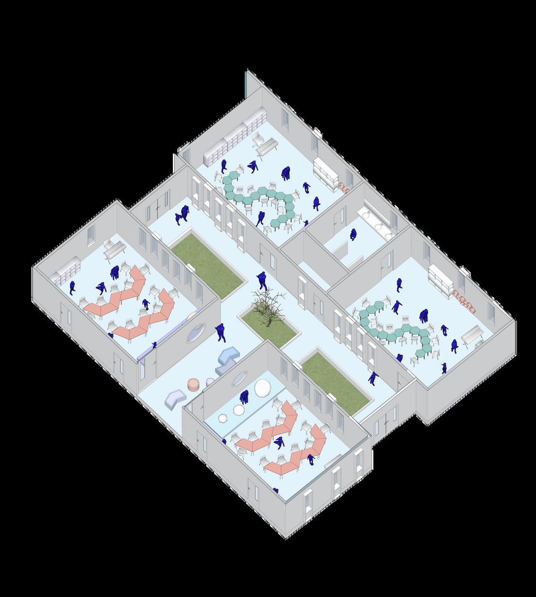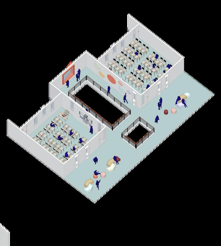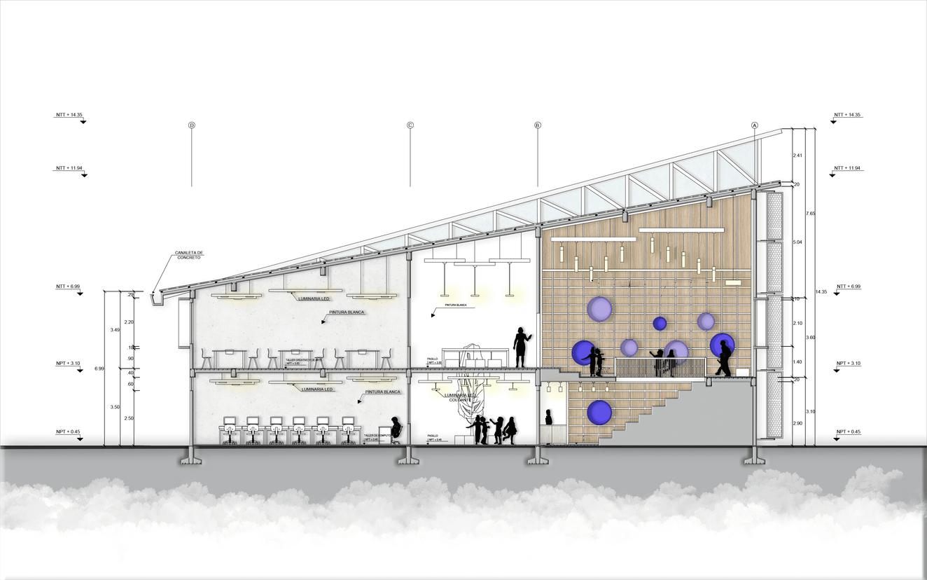 Excluciva para uso pedagógico, los espacios se sirven al funcionamiento de los ambientes de aprendizaje, la relación al exterior se encuentra cerrada y se maneja de manera independiente.