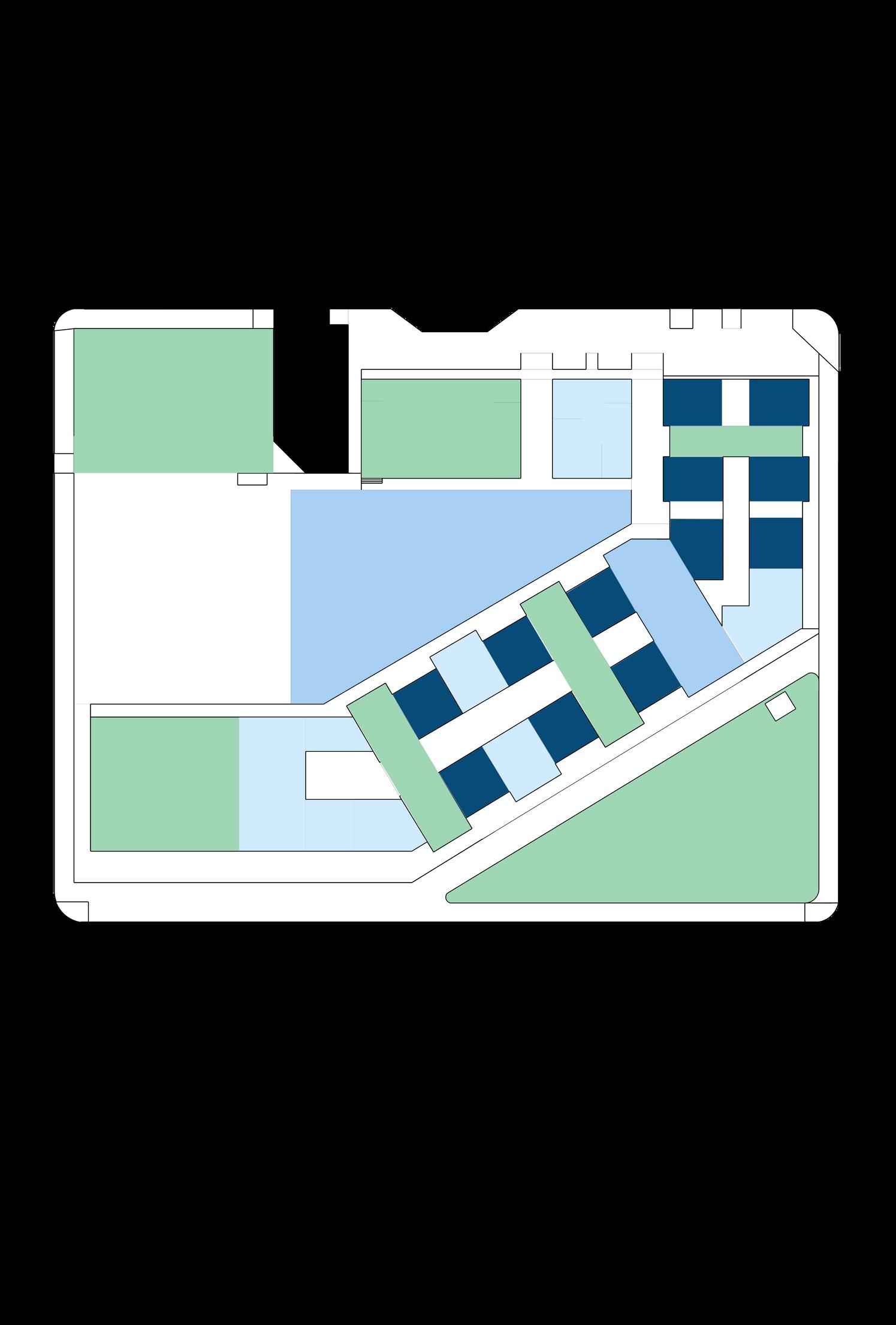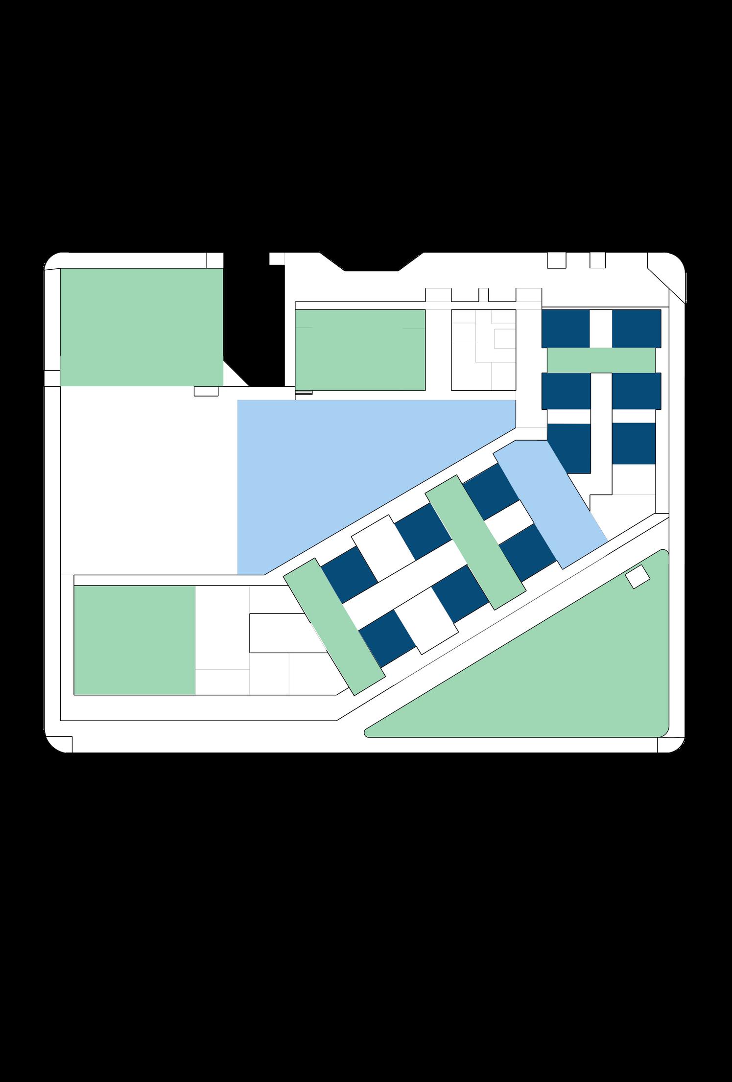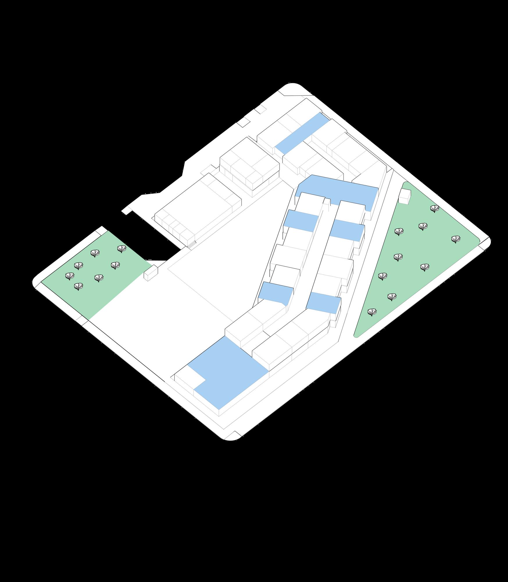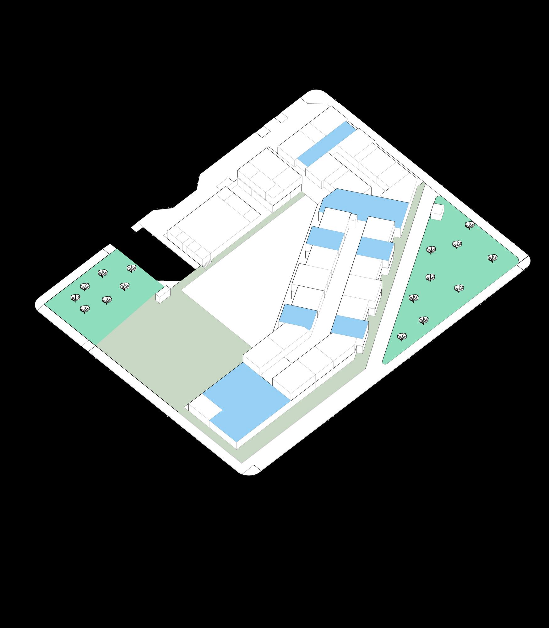 COMUNITARIO: Espacios públicos de uso restringido que permiten mantener una estructura funcional flexible (invernadero, parques exteriores, auditorio).