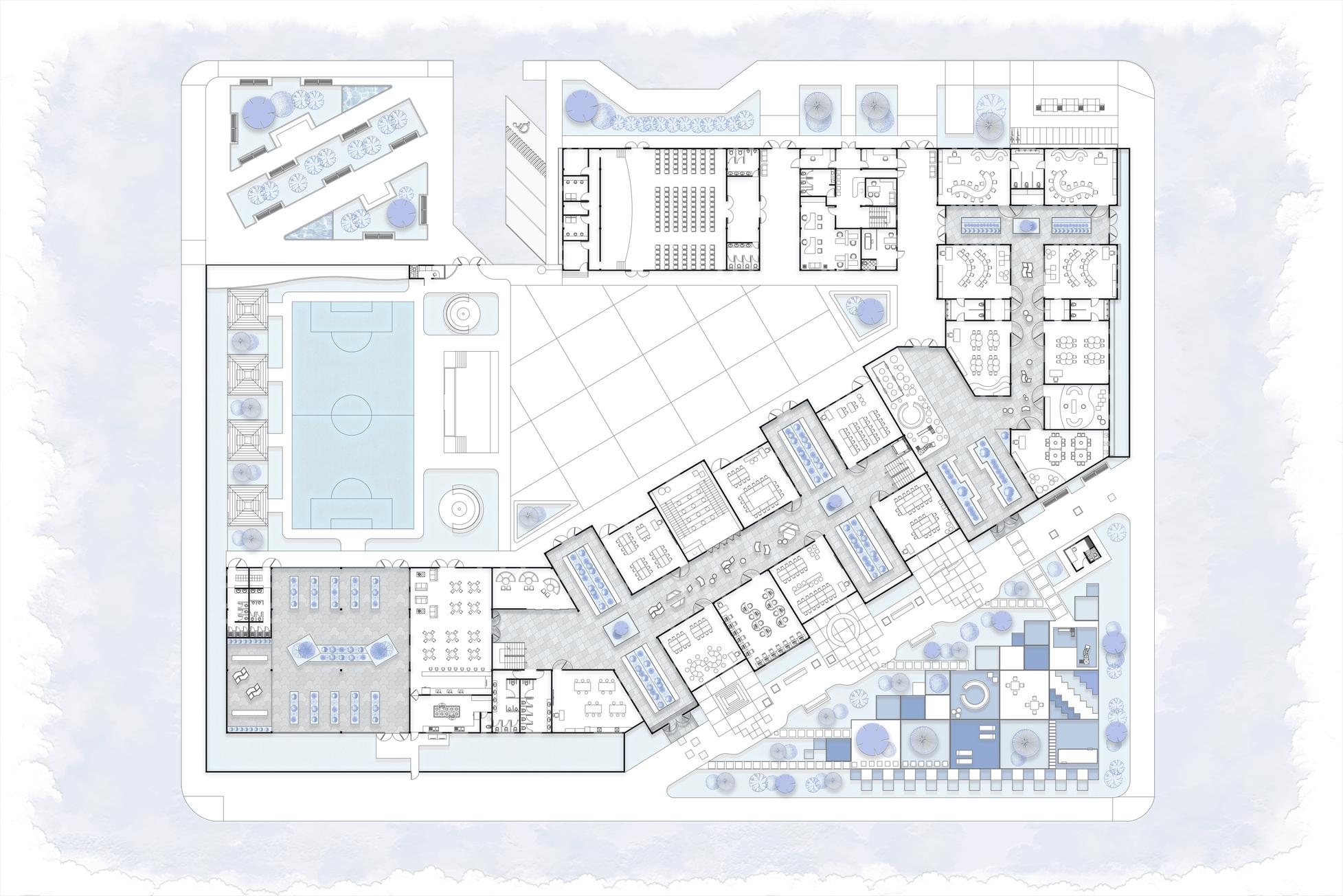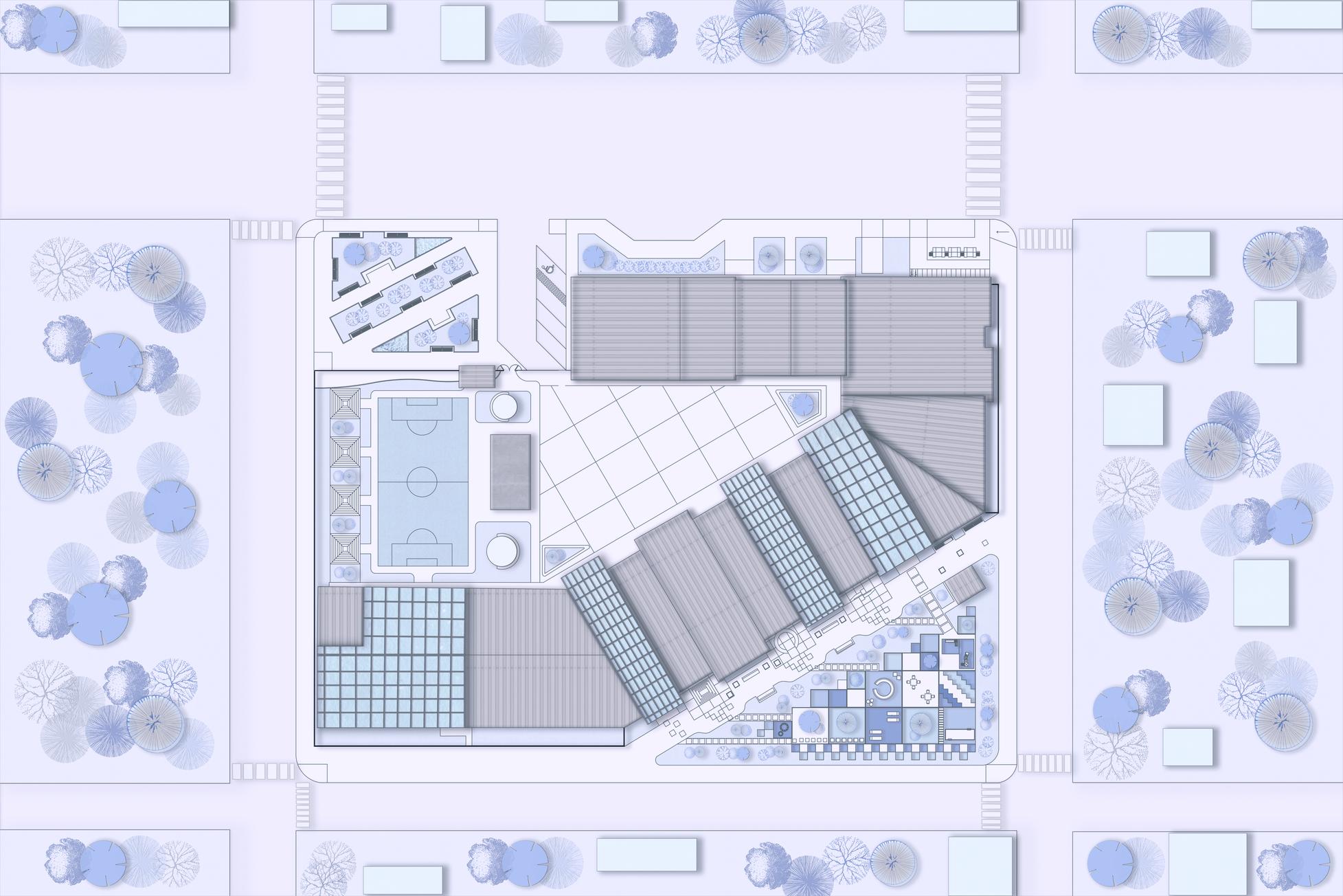El terreno con forma irregular, ayuda a definir las formas del proyecto