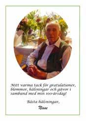 NILS SÄFSTRÖM, FALUN, nybliven 100-åring, uppvaktades av Mellanskog med blommor och hälsningar från föreningens ordförande, Karin Perers. Nils anställdes som fältchef av Dalarnas Skogsägarförening 1951