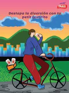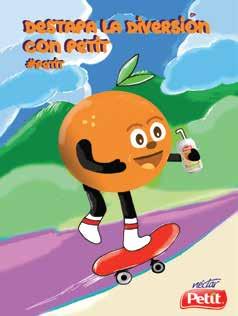 Ilustracion publicitaria de la marca Petit Dos tipos de piezas publicitarias para la marca Petit con el lema "Destapa la diversión con tu Petit favorito" .