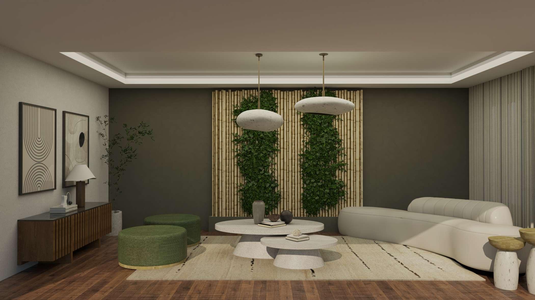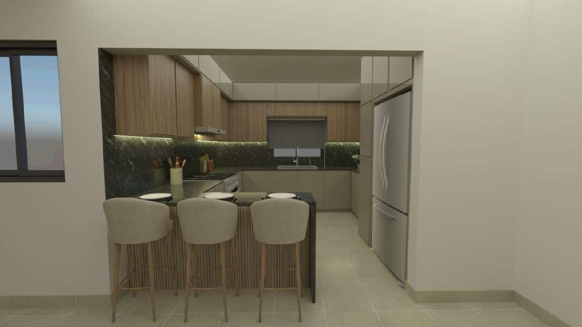 Diseño de espacio residencial unifamiliar. Uno de los requisitos es que fuera un espacio amplio, acogedor y con una estética minimalista inspirado en la naturaleza, por lo que el diseño se realizó basado en el estilo Wabi Sabi, el cual se caracteriza por la sencillez y la naturalidad, logrando así espacios cálidos, acogedores y relajantes