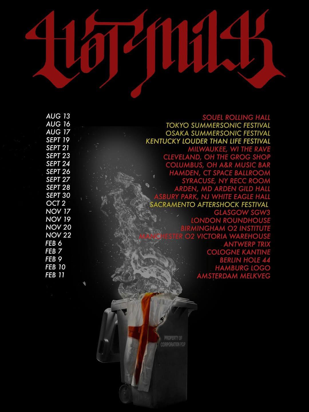 Following performances in Seoul, Tokyo, and Osaka in August, U.K. alt-rock band Hot Milk have made their way to the U.S. in September supporting their sophomore album, Corporation P.O.P. After wrapping at Aftershock Festival on October 2, they will head back to the U.K. in November before trekking across Europe in February.