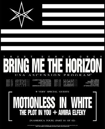Pt. I of Bring Me The Horizon’s USA ascension program+ kicked off at the Louder Than Life festival on September 21. Making its way through cities like Atlanta, Dallas, and Phoenix before wrapping in Sacramento on October 5, special guests will include Motionless In White, The Plot in You, and Amira Elfeky. Pt. II has yet to be announced.