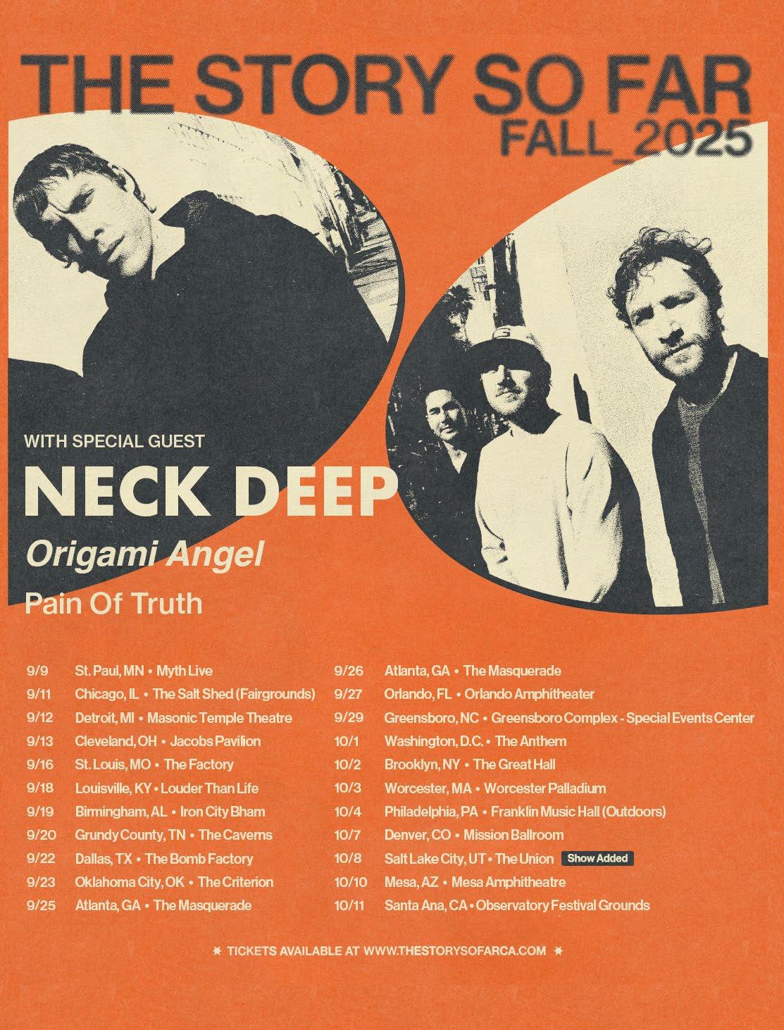 Origami Angel has become one of the most defining duos in modern emo since the release of their groundbreaking debut album Somewhere City in 2019. After establishing a pop-punk and math rock foundation through the lens of escapism, vocalist and guitarist Ryland Heagy and drummer Pat Doherty expanded their sonic palette on their dynamic second LP GAMI GANG in 2021. Their ambitious spirit continued with their 2023 release, The Brightest Days, which cemented them as fearless boundary-pushers, leaning into playful, power-pop inspired moments.