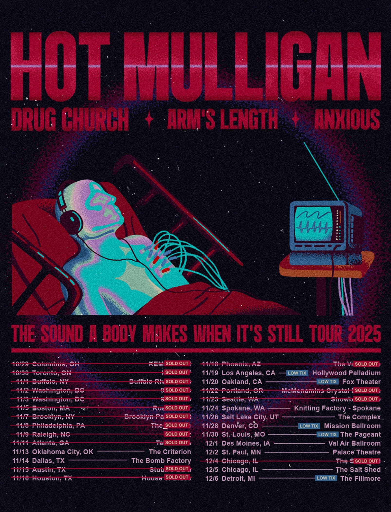 To celebrate the release of their fourth studio album, The Sound a Body Makes When it’s Still, Hot Mulligan are heading out on a U.S. headlining tour. While tickets for the first portion are sold out, tickets remain for their mid-November and December dates. Support comes from Drug Church, Arm’s Length, and Anxious. SEPT 21 - OCT 05 OCT 10 - NOV 13 OCT 29 - DEC 05