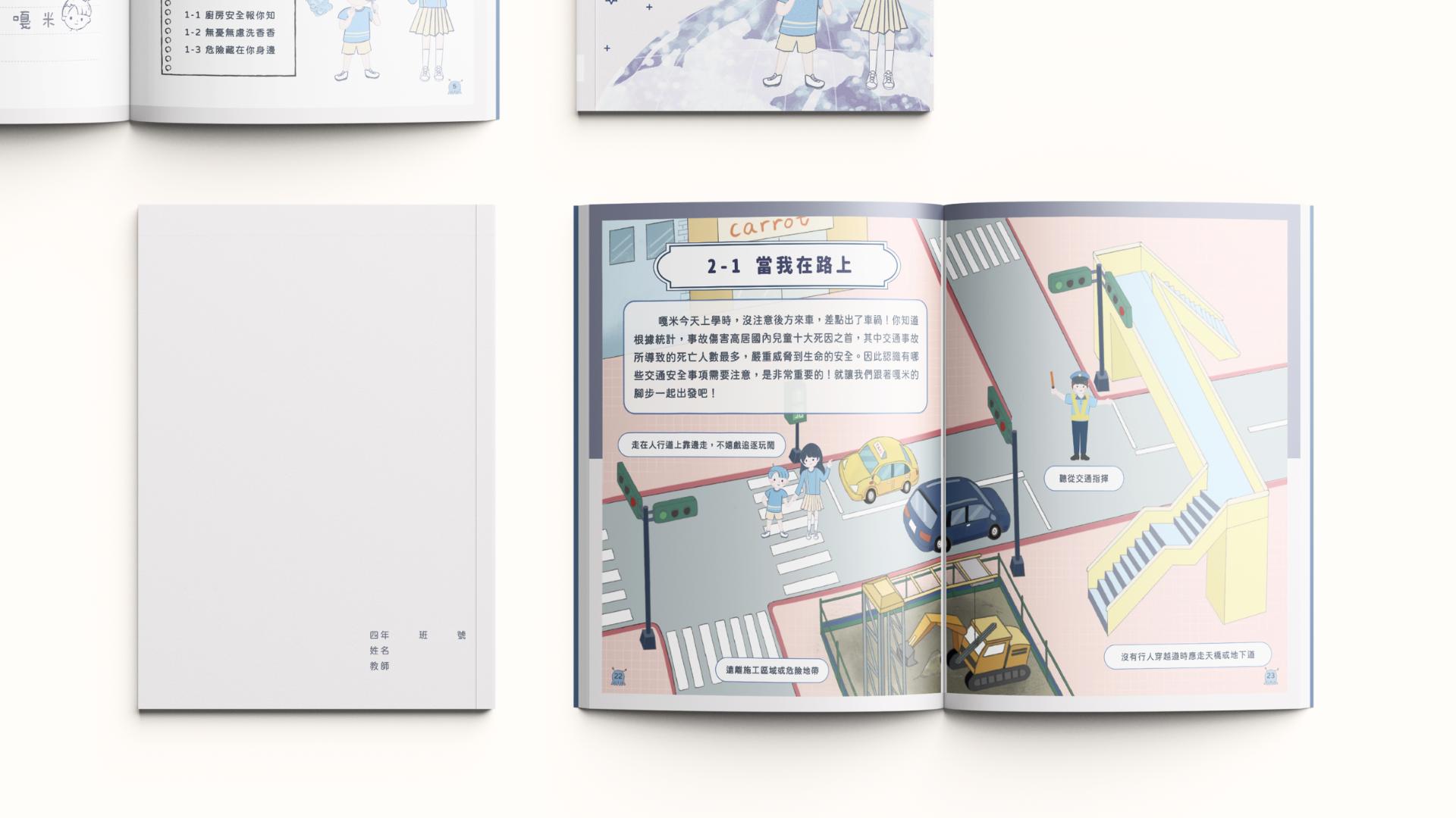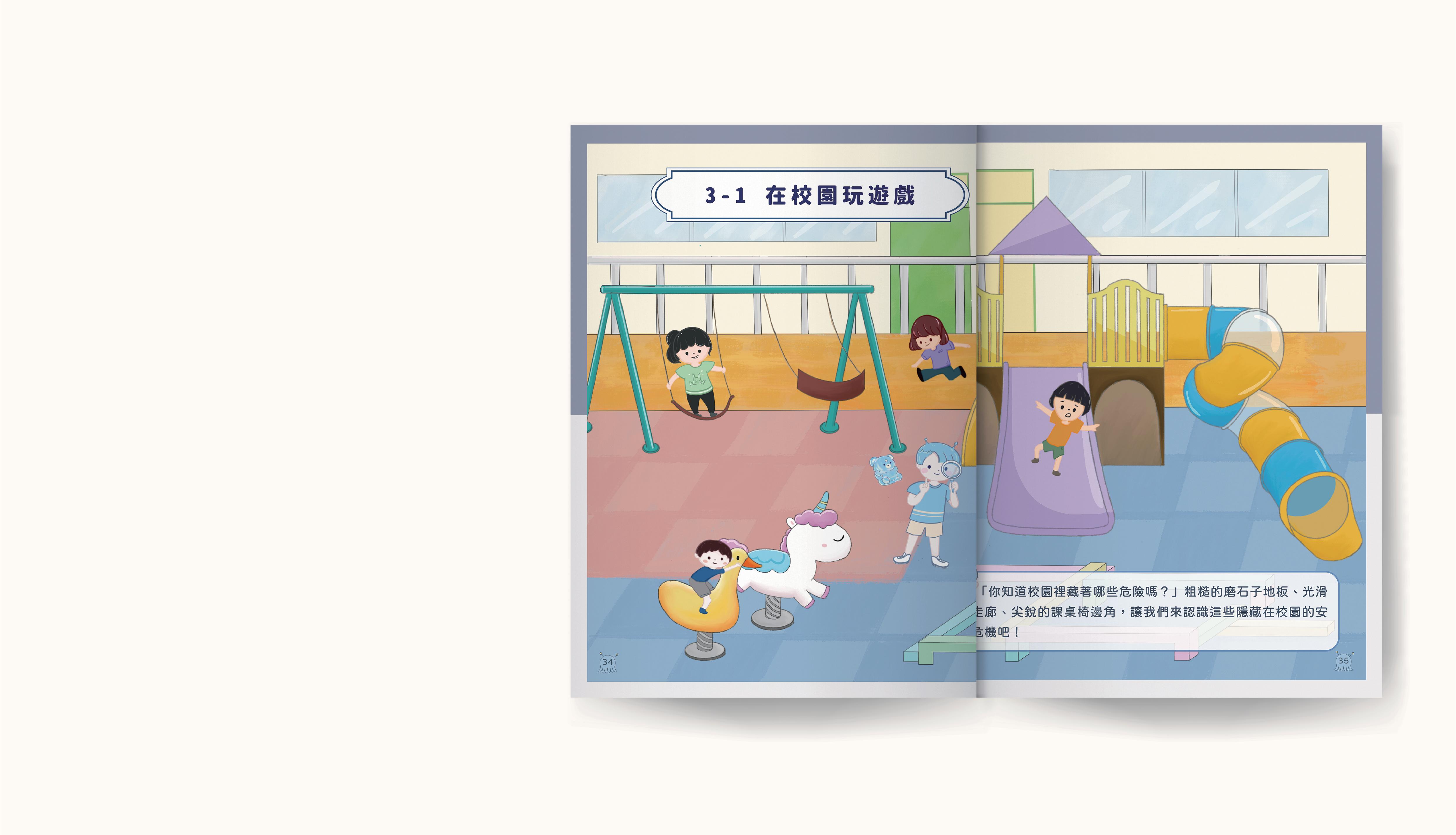 搭配國小四年級健康教育課-安全生活與運動防護, 設計四個單元安全守則的 課本、習作、教師手冊、教具。