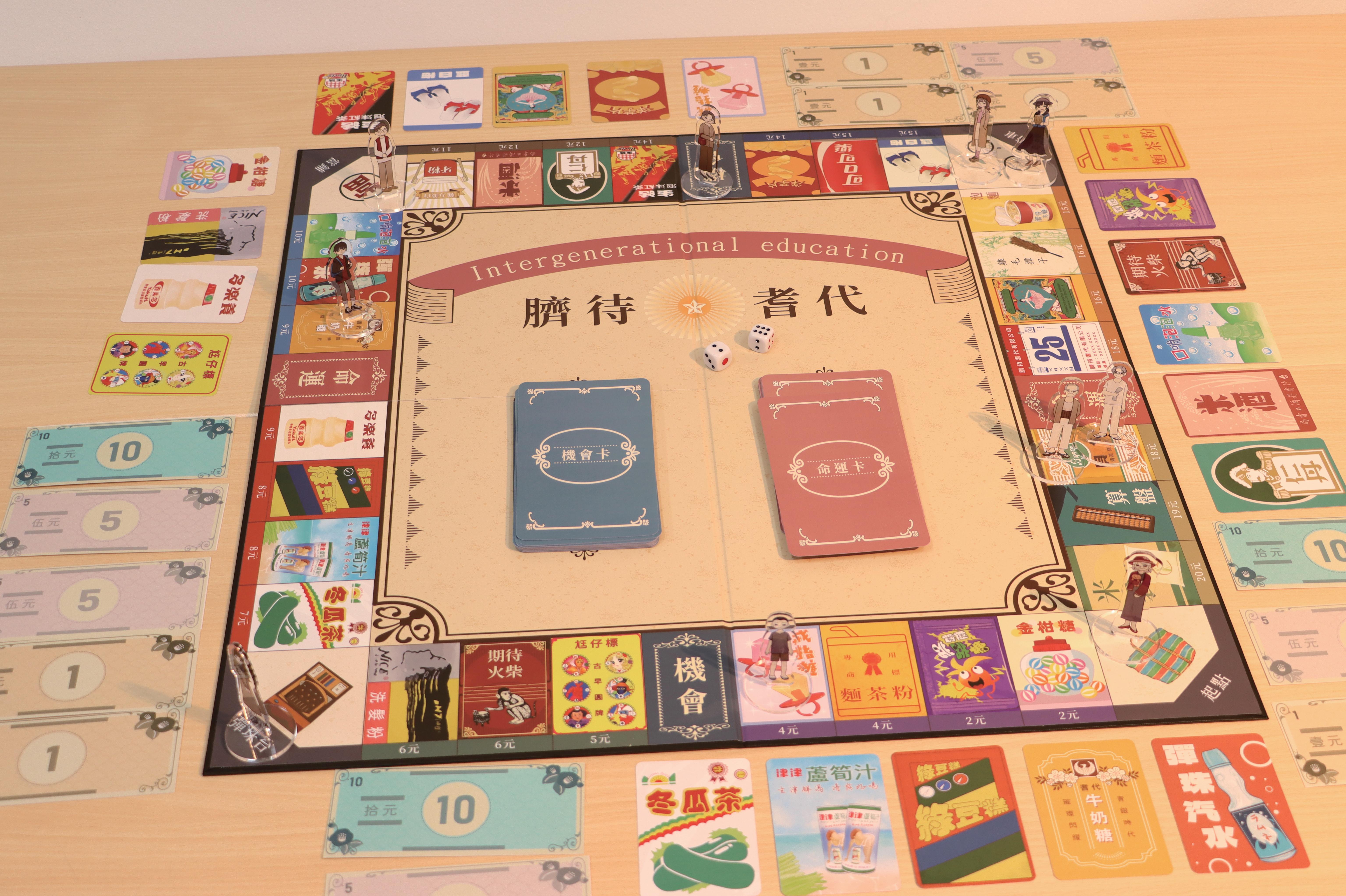 畢業專題其中一項產出,以大富翁為出發,將地產改為商品卡, 機會命運卡融入交流。長輩與年輕人一起爭取雜貨店繼承權。
