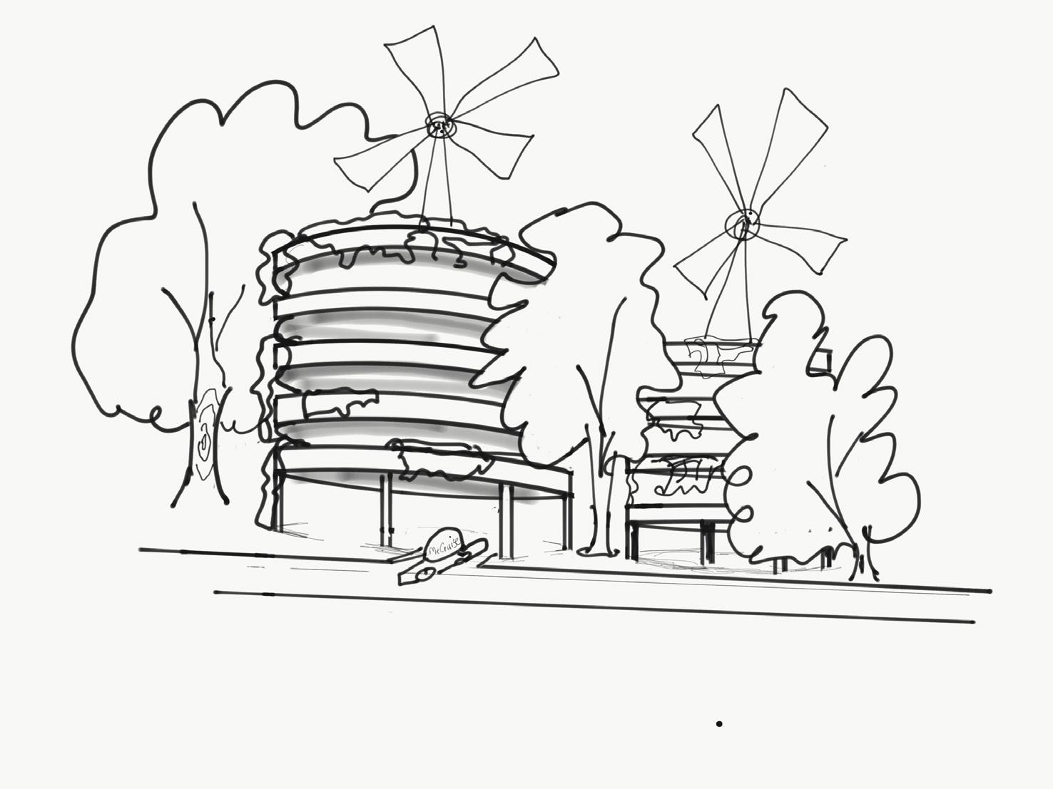 Ideation Sketching in layers with underground for large bulky trucks that haul rubbish or deliveries, next level for pedestrian travel and up from there with tubes around the city perimeter for autonomous vehicles.