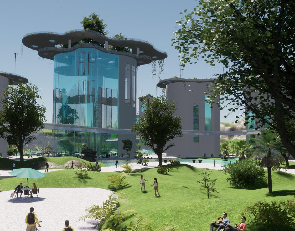 Powered by wind, solar, hydro electricity creating a city that is fully self contained and energy effecient.