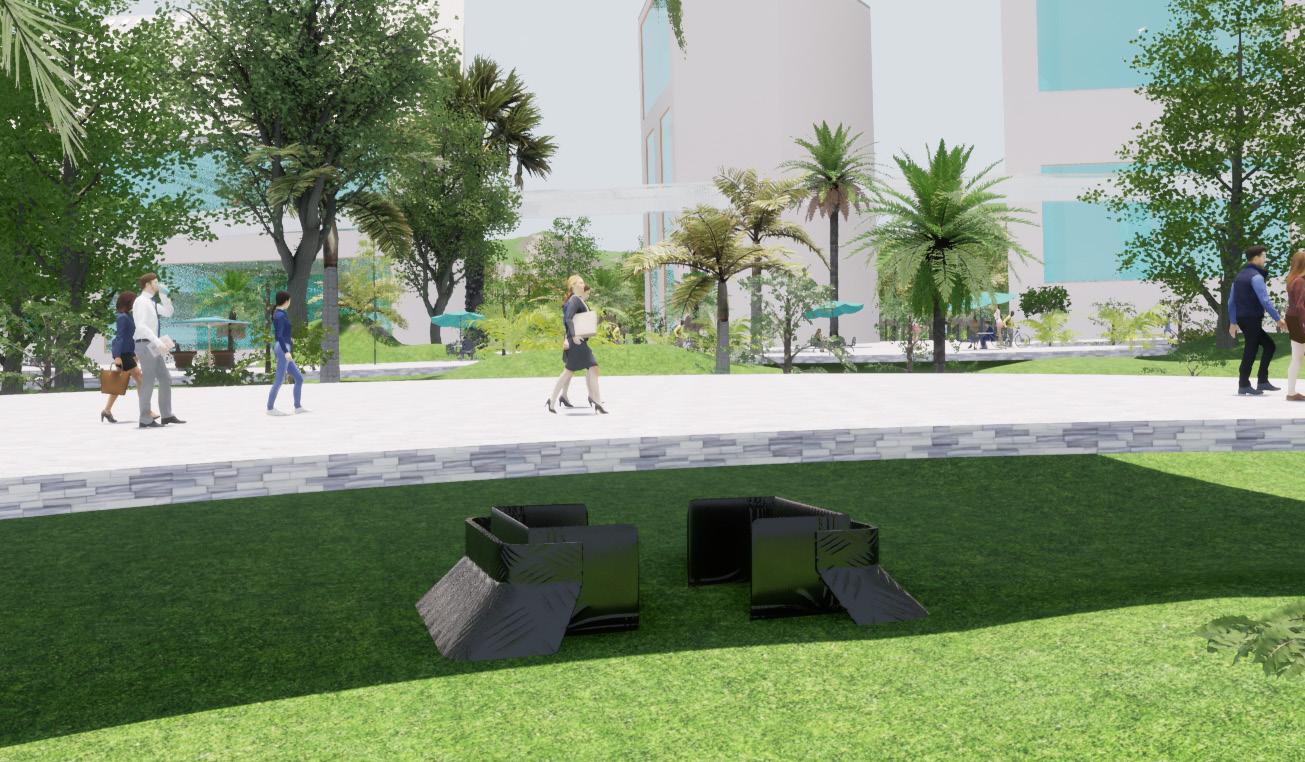 Rooftop Gardens that can be enjoyed with pathways, solar tubing for interior daylighting. Plantings for a green environment that retain water runoff to be reused in the city.