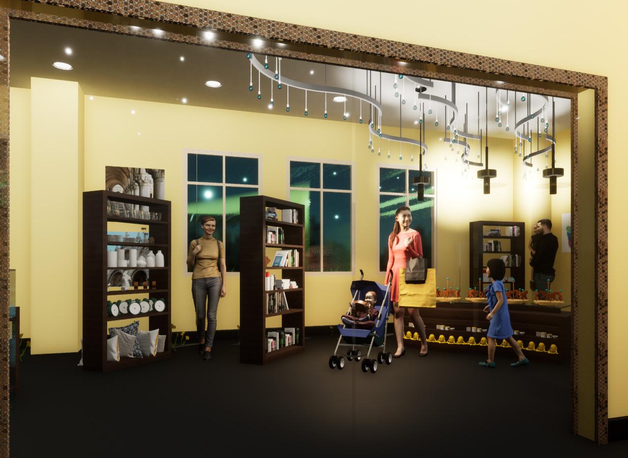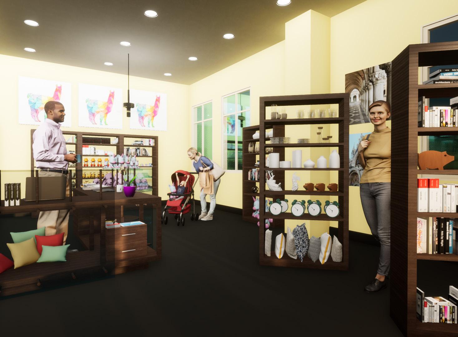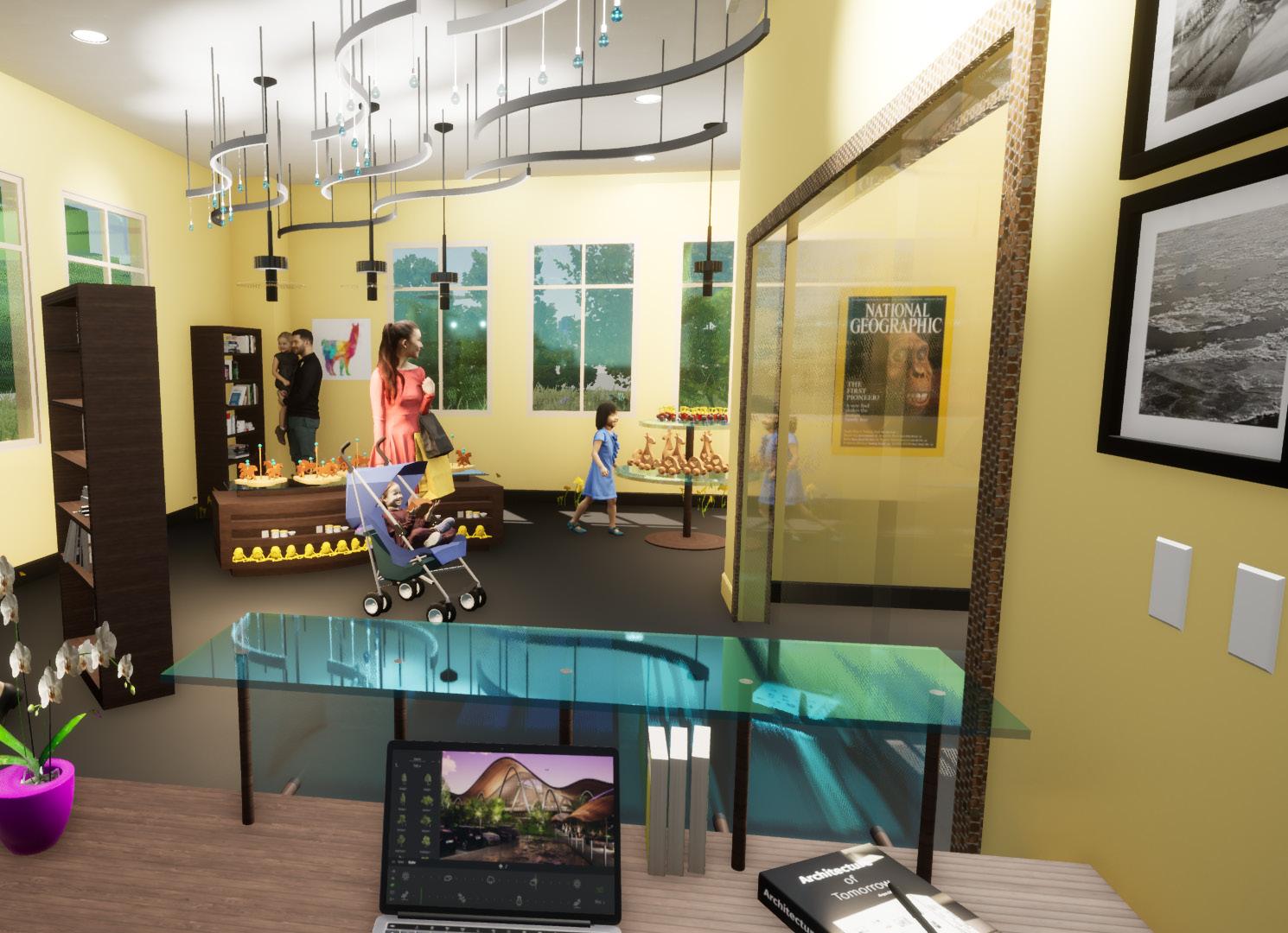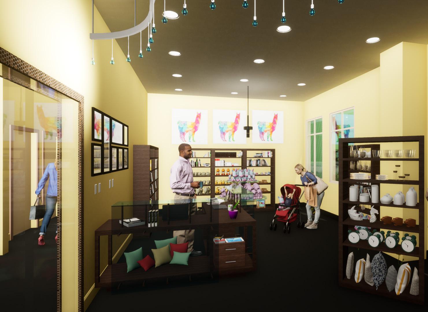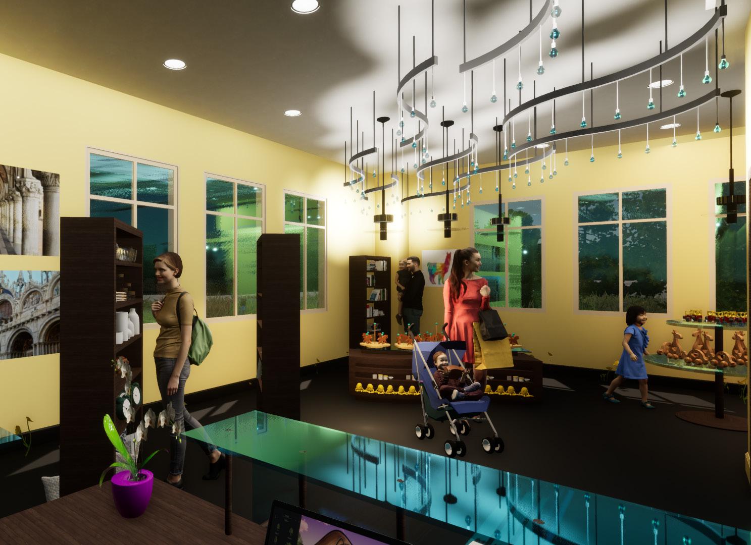 Renderings done in Twinmotion to help visualize the final design. Materials resourced have durability and sustainable properties fitting for commercial use.