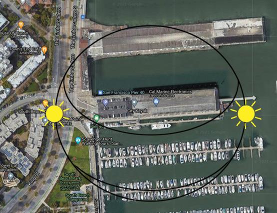 Proximity to Other Sites: The closest existing site to the south is the Mission Creek Boat Launch (SF15), which has a low-float dock and ADA gangway. Further to the south is the Pier 52 Boat Launch (SF7), which has a low float dock with transfer step and kayak assist from an ADA gangway. To the north, Pier 1.5 (SF16) provides a high-freeboard dock from an ADA gangway. is managed by the Port of San Francisco. Pier 40 and the adjacent waterfront was recently redeveloped to provide improved boat launch facilities, restrooms, parking,