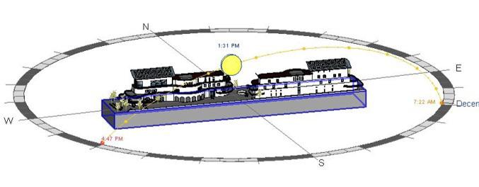 To evaluate the sun’s patterns throughout the year and locate best location for windows, doors, daylighting abilities, green roof, solar panels,