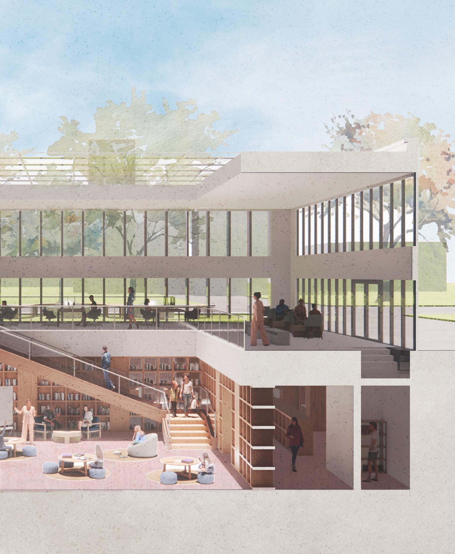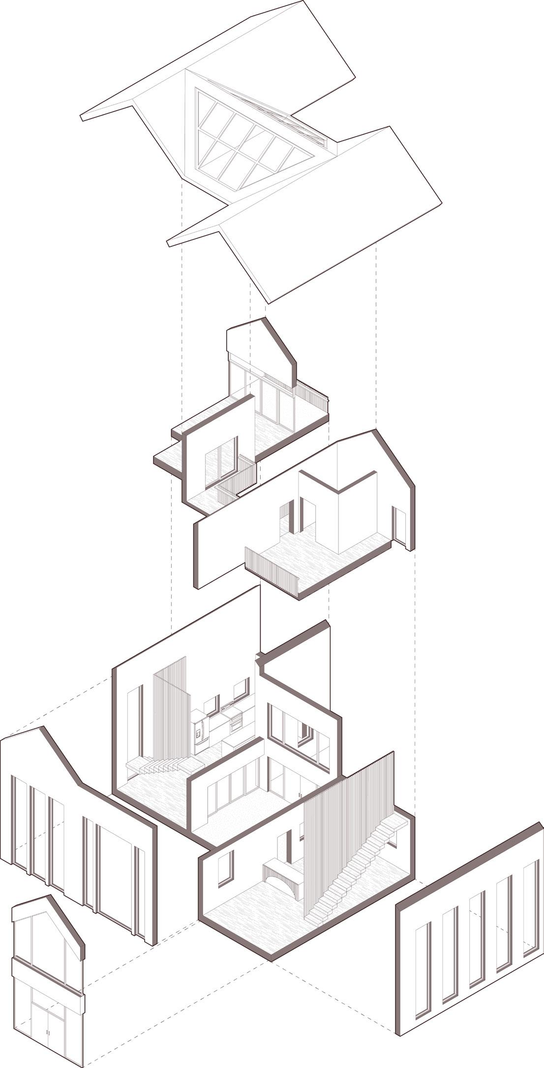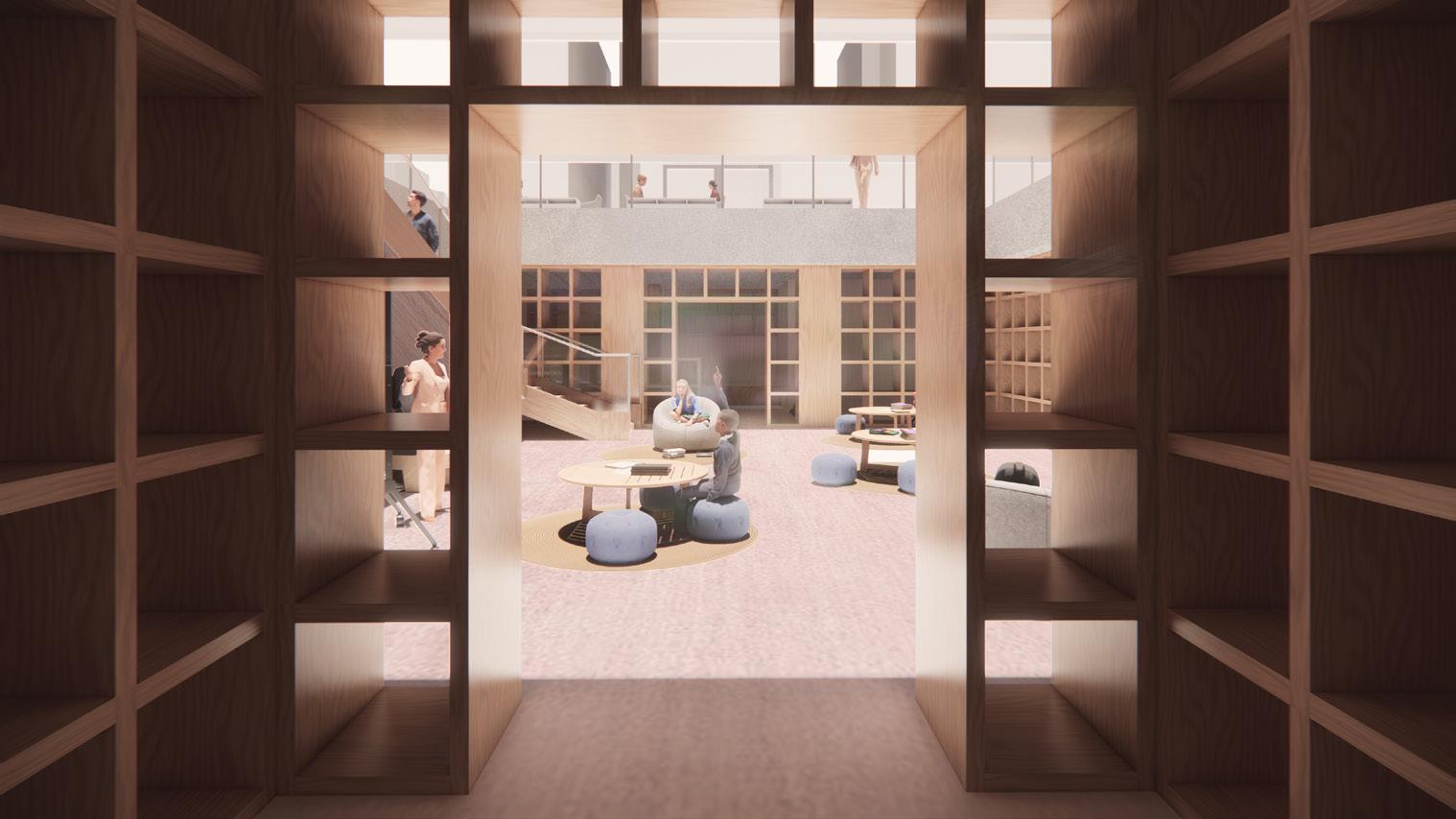 Situated in the intersection between Thompson Street and Broadview Avenue, the Labyrinth Library acts as a mediator between the unique blend of surrounding private residences and public commerical institutions. The library employs a maze-like spatial arrangement, which beckons users to explore the space with a sense of curiosity as they navigate through a sea of books. The children’s activity space lies at the heart of the library, which was strategically designed to maintain a visual connection with the rest of the library.