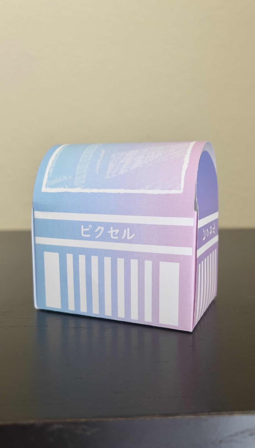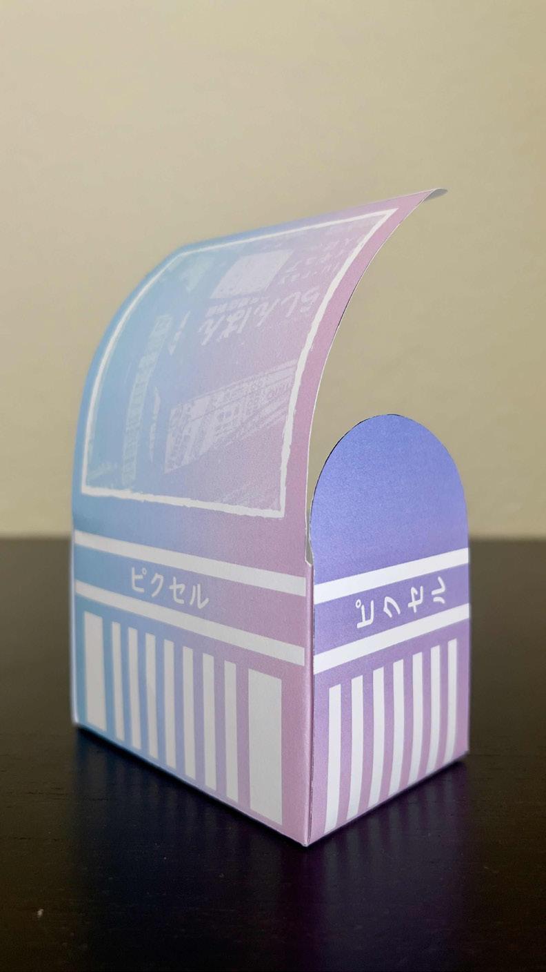 Made the design on the package using vector shapes and used Japanese style typography to make it mimic a Japanese street. Made the cover design by making a city photograph I found online into black and white and blend it to match the style of the vector street.