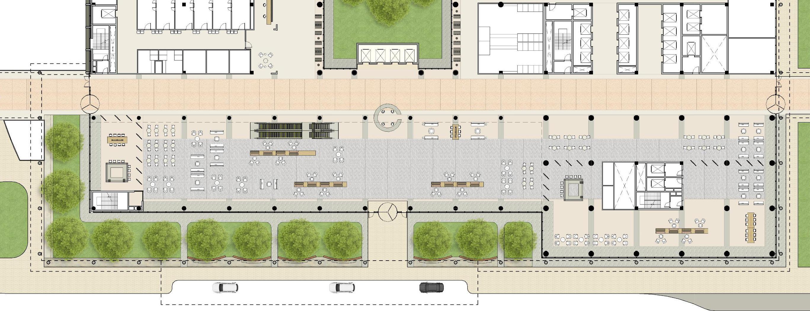 Medical mall lobby floor plan + partial interior section. | Illustration by author