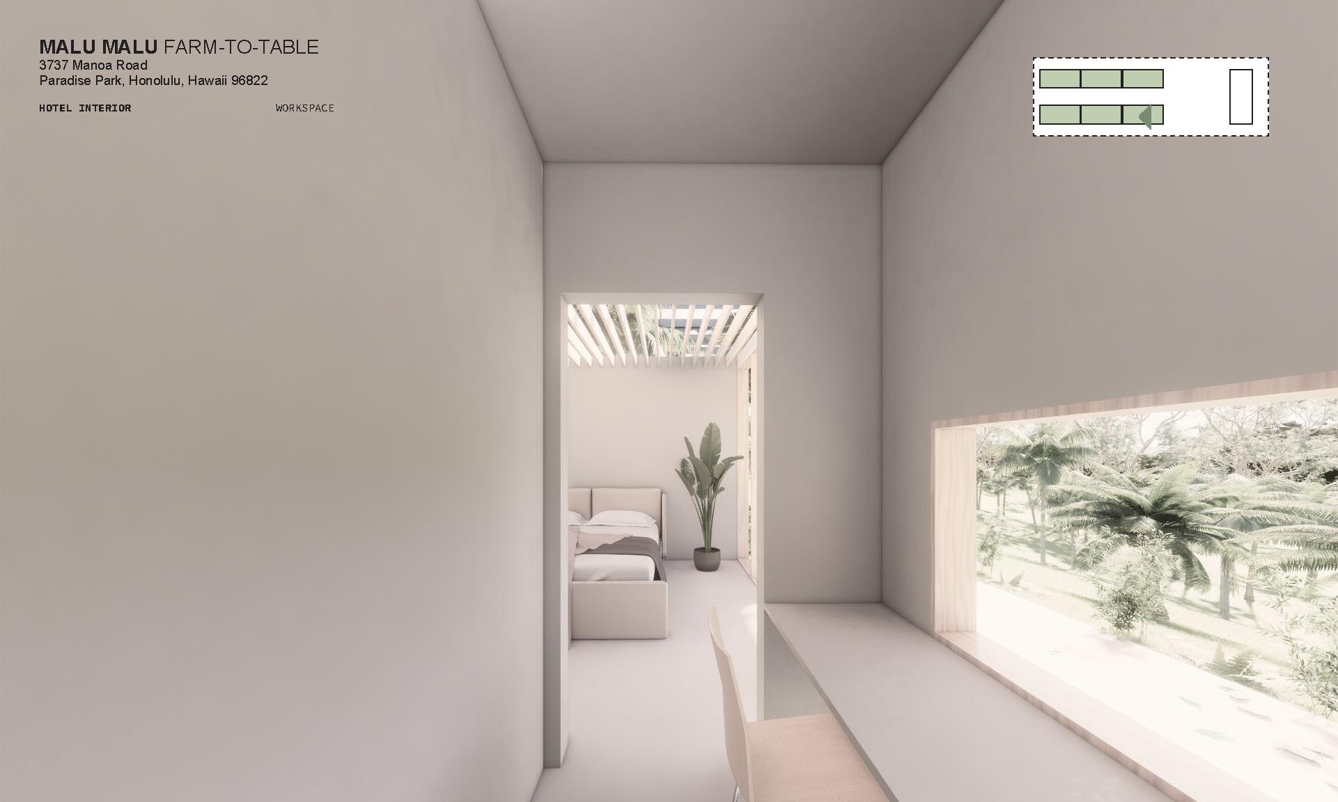 Conceptual Rendering of Farm-to-Table Hotel Guest Rooms | Render by author.