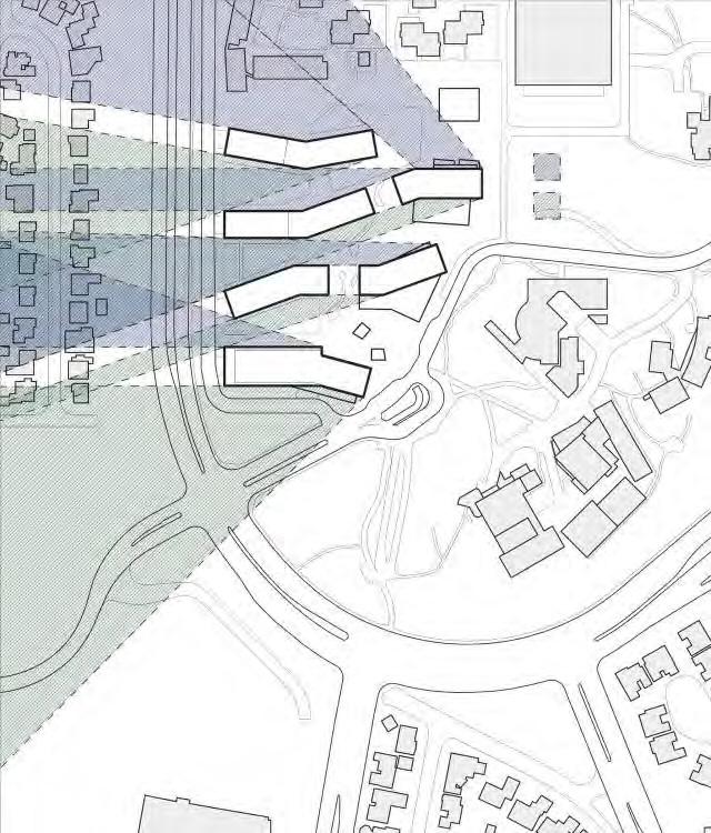 Building masses maximize access to views from residential levels.
