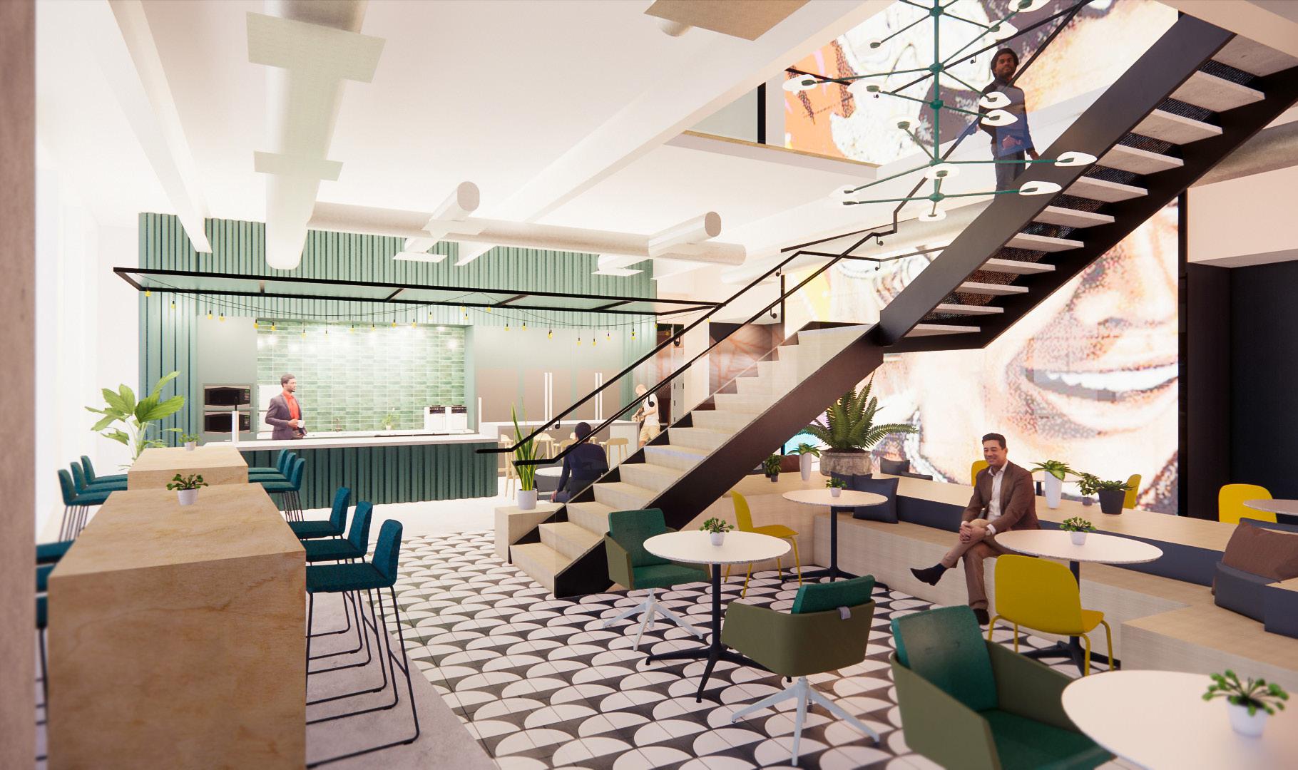 Workplace client (1,000 employees, ~300,000 sf) in San Francisco, CA. | Render by author.