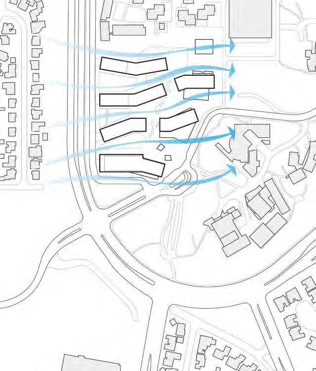Pacific Ocean wind circulation in between building masses.
