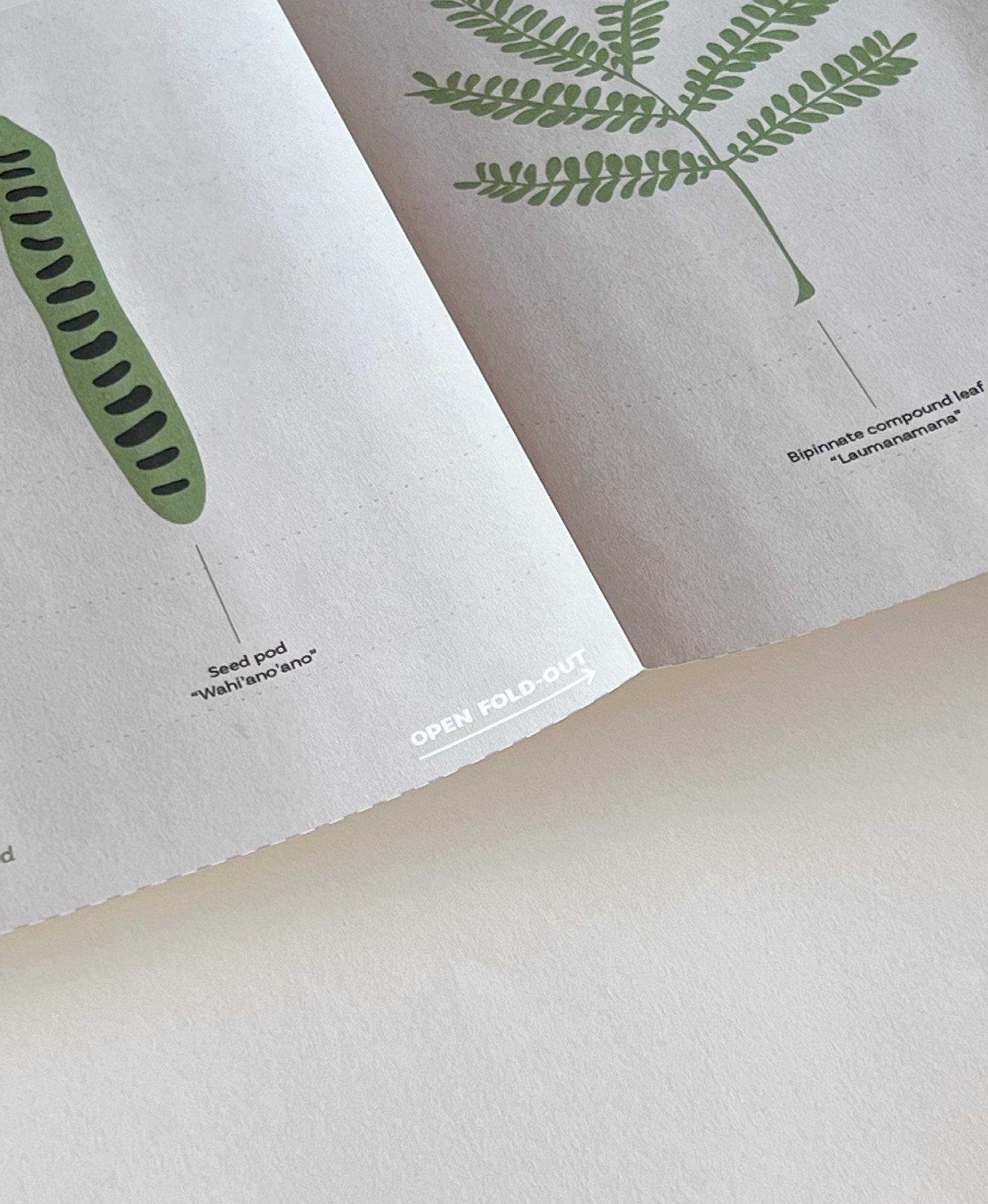Selected spreads from catalogue understanding Acacia koa’s function, and symbiotic relationships to other species. | Illustration by author.