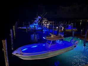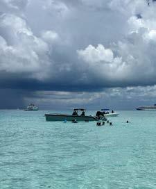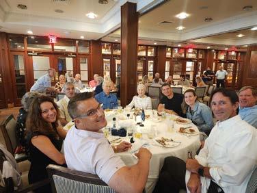 Some of the other highlights of our trip were heading south to Honeymoon Harbour, where we anchored just o the beach. Faddy, our chef, grilled hot dogs and hamburgers right on the beach. We snorkeled the “ ree Sisters” rocks just o of Resorts World and did some lobstering on the north tip of the Island. We anchored o of Radio Beach, where we downed a few cold ones. Some of us had lunch on the boats, while others waded to shore for some fresh fried lobster tail. Members Al and Kathy Germi hosted us on their beautiful Viking for appetizers and cocktails more than once.