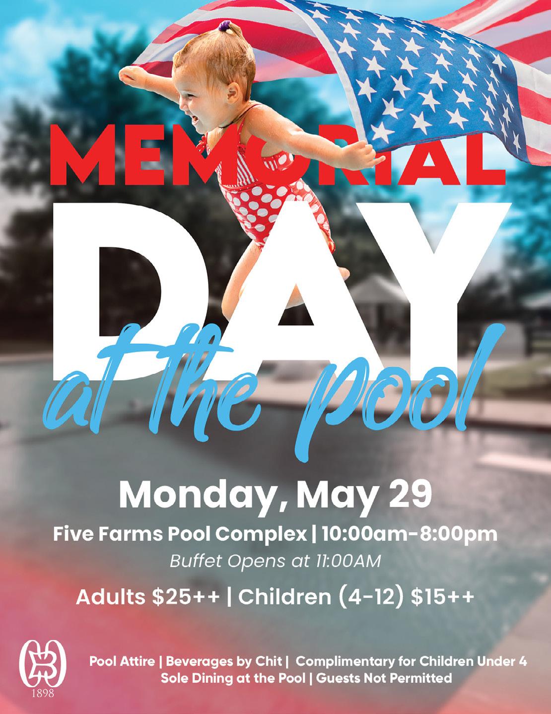 C.J. Ilardo, Chair cjilardo@gmail.com | 443.622.7697 Gregory E. Johnston, Board Liaison gregjohnston@outlook.com | 410.382.7798 William T. Dowling thedowlings5@comcast.net | 410.952.2976 Candace D. Ellrich Candace.Domayer@gmail.com | 336.263.6370 Vikas Gupta vgupta@omegahealthcare.com | 571.225.8065 Tierney Jautze tierneyhoover@gmail.com | 410.935.8533 Erika McMahon ehockycko@yahoo.com | 443.827.9446 Leanne R. Mohler leanne6408@comcast.net | 410.591.2786 John L. Tansey jtans@comcast.net | 443.904.3270 RECEPTION Roland Park 410.889.4400 Five Farms 410.252.6505 Hours Monday 9:00am-5:00pm Tuesday-Sunday 9:00am-9:00pm ON THE COVER BCC member Charlie McLain (son of Ashley & Matthew McLain) at the Easter Egg Hunt at Roland Park—April 2022 CONTENTS 1 Membership 2 À la Carte Dining 3 Events 6 Fitness & Wellness 8 Golf 11 Grounds 12 Racquets EVENTS CALENDAR Location - Roland Park RP | Five Farms FF April 1 - Summer Camp Guest Registration Opens 2 - Easter Egg Hunt RP 6 - Uncorked Wine Series FF 8 - Easter Egg Hunt RP 9 - Easter Brunch RP 9 - Easter Dinner FF 10 - Independence Day Celebration Registration Opens 19 - Trivia Night FF 22 - Pollinator Plants To-Go FF 29 - À la Carte Dining Available at Roland Park Only May 1 - Annual Meeting of the Membership RP 4 - Uncorked Wine Series FF 14 - Mother's Day Brunch RP 14 - Mother's Day Dinner À la Carte Specials FF 17 - Trivia Night FF 23 - Spring Gardening Workshop FF 26 - Opening Day at the Pool FF 27 - The Amish Outlaws FF 29 - Memorial Day at the Pool FF 30 - Club Closed June 1 - Uncorked Wine Series FF 18 - Father’s Day Dinner FF 21 - Trivia Night FF 26 - BCC Summer Camp: Week 1 FF