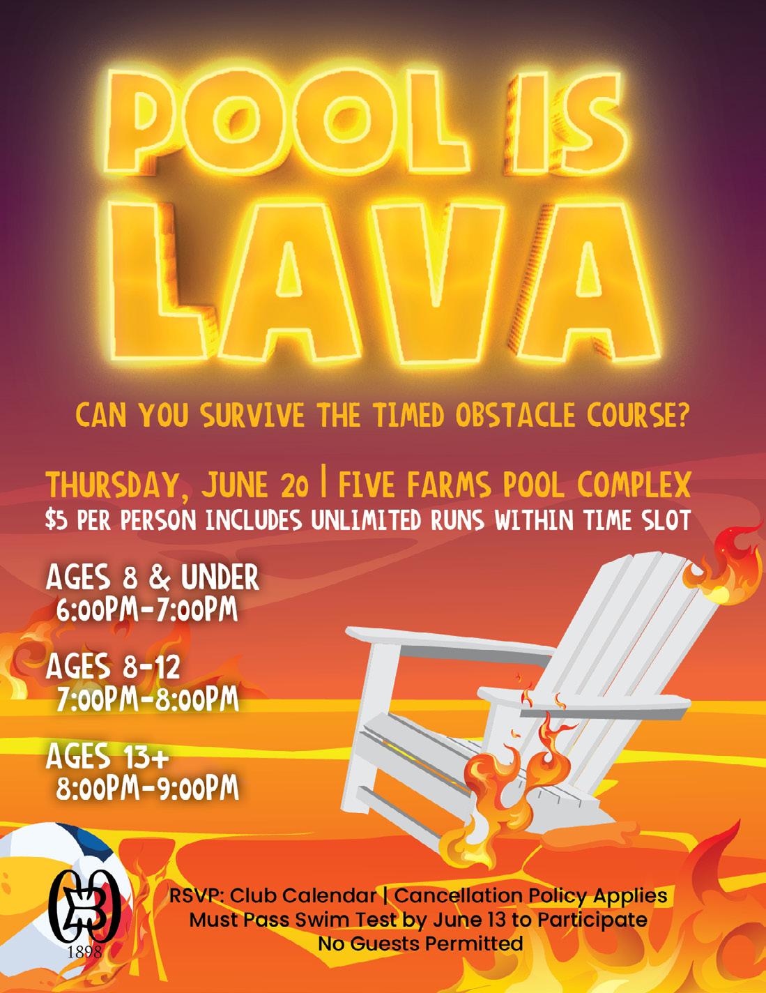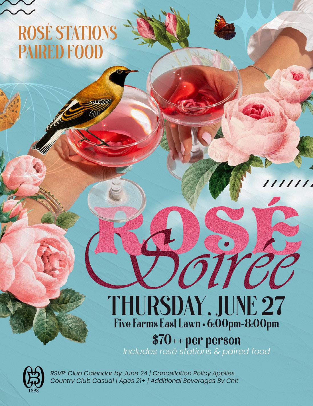 Leanne R. Mohler, Chair leanne6408@comcast.net | 410.591.2786 C.J. Ilardo, Board Liaison cjilardo@gmail.com | 443.622.7697 Brian Del Monte bryan.t.delmonte@gmail.com | 410.925.3877 William T. Dowling thedowlings5@comcast.net | 410.952.2976 Candace D. Ellrich Candace.Domayer@gmail.com | 336.263.6370 R. Michael Gill, Jr. r.michael.gill@gmail.com | 410.371.7993 Nell T. Goetze nellg17@gmail.com | 410.804.5128 Vikas Gupta vgupta@omegahealthcare.com | 571.225.8065 Tierney Jautze tierneyhoover@gmail.com | 410.935.8533 Nicole N. Lubin nicolelubin@comcast.net | 804.833.1270 John L. Tansey jtans@comcast.net | 443.904.3270 RECEPTION Roland Park 410.889.4400 Five Farms 410.252.6505 Hours Monday 9:00am-5:00pm Tuesday-Sunday 9:00am-9:00pm CONTENTS 1 Great People Make Favorite Places 2 Membership 3 À la Carte Dining 4 Aquatics 5 BCC + GUNTRY Partnership: Father's Day Special 6 Events 8 Class of 2024 Spotlight 10 Fitness & Wellness 12 Golf 15 Grounds 16 Racquets EVENTS CALENDAR Location - Roland Park RP | Five Farms FF | Off-site OF June 6 - Caddyshack Movie Night FF 8 - Poolside Pizzeria FF 16 - Father’s Day Dinner FF 19 - Trivia Night FF 20 - Pool is Lava FF 24 - BCC Summer Camp Wk1 FF 27 - Rosé Soirée FF 28 - Friday Night Pool Party: Medieval Times FF July 3 - Independence Day Celebration FF 4 - July 4th BBQ at the Pool FF 8 - BCC Summer Camp Wk 2 FF 15 - BCC Summer Camp Wk 3 FF 17 - Trivia Night FF 20 - Poolside Pizzeria FF 26 - Friday Night Pool Party: Taste of Asia FF 29 - BCC Summer Camp Wk 4 FF August 1 - Uncorked Wine Series FF 5 - BCC Summer Camp Wk 5 FF 10 - Poolside Pizzeria FF 21 - Trivia Night FF 23 - Friday Night Pool Party: Jurassic Pool FF ON THE COVER Dr. Todd Ruth and his son Nolan at our Father's Day Dinner event at Five Farms—June 2023.