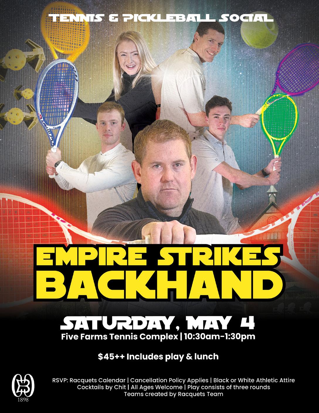 16 May 2024 RACQUETS RSVP: Racquets Calendar | Tennis Whites | *Cocktails by Chit SUNDAY, MAY 12 FIVE FARMS TENNIS COMPLEX | 9:00AM BREAKFAST BEGINS AT 10:30AM $45++ INCLUDES CONTINENTAL BREAKFAST, FAVOR, & MIMOSA & BLOODY MARY BAR* Tennis and Pickleball Mother s Day Racquets social ’
