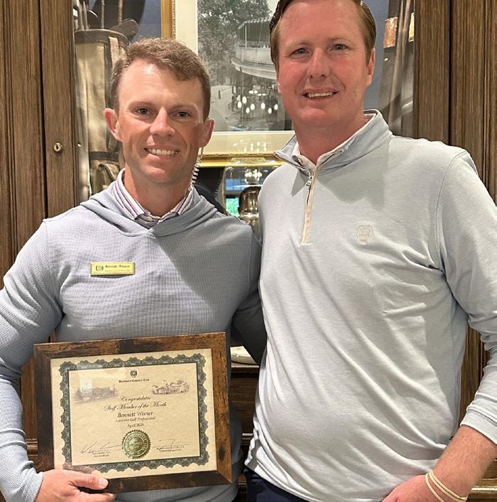 He joined our Golf Operations Team in late summer 2024, following his time as a professional golfer. Since day one, Bennett has consistently stepped up to support every aspect of the operation and truly embodies what it means to be a team player. His upbeat and welcoming demeanor creates a positive experience for members and guests every day. We’re proud to recognize Bennett’s hard work, dedication, and outstanding contributions with this welldeserved honor!