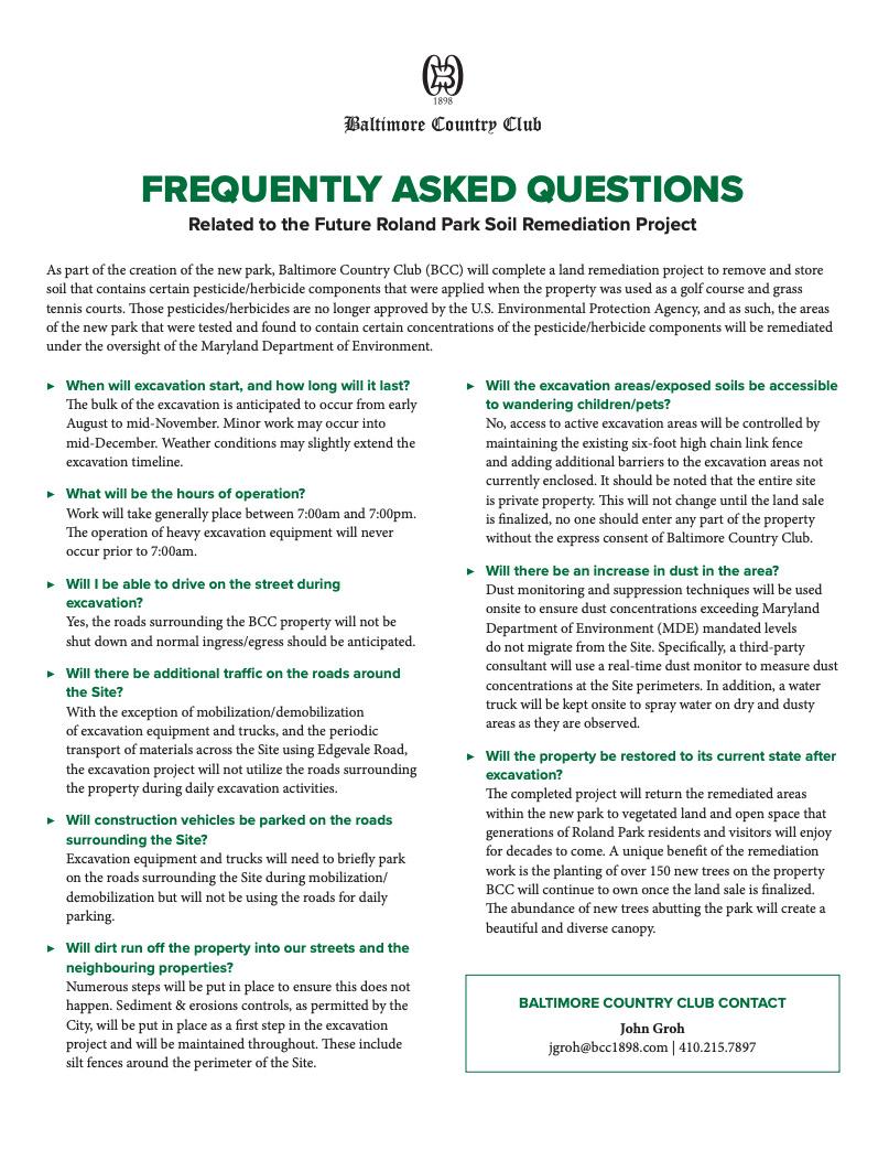 We would like to provide an update on the Roland Park Land Sale and remediation project.