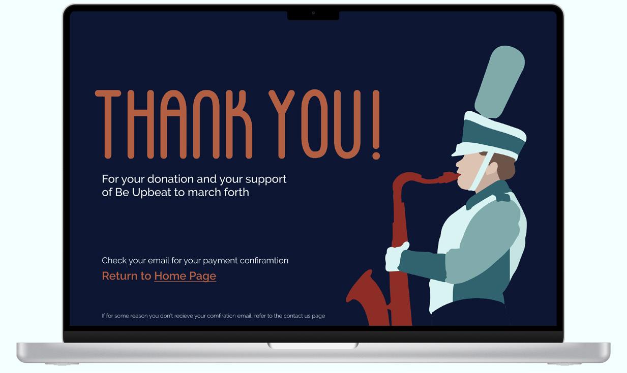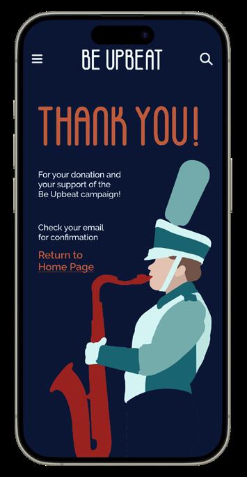 The primary icon is created to reflect the shape of a trumpet, one of the most critical instruments within a marching band. The curves that make up the icon are meant to compliment the shape of the letters within the Be Upbeat logo.
