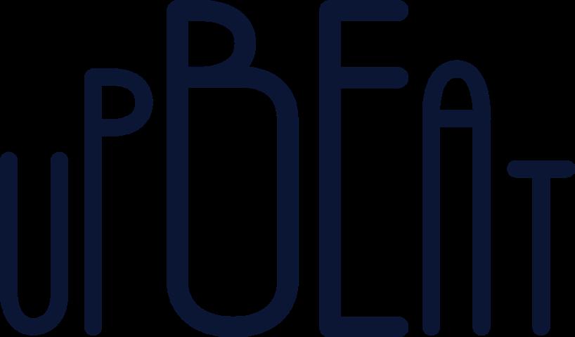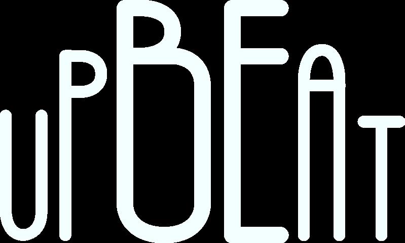 The Be Upbeat Logo was created using a custom typeface of the same name. It was created with curves that reflect stylized sound waves.