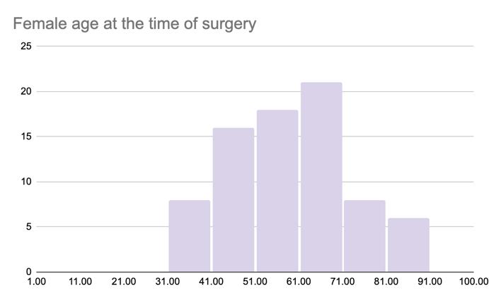 Biological Sex, Age at time of surgery