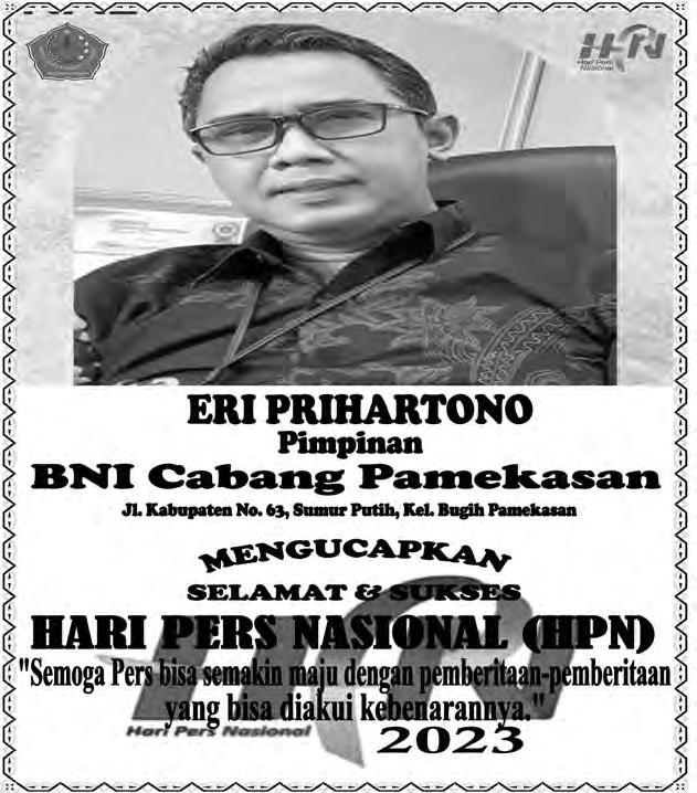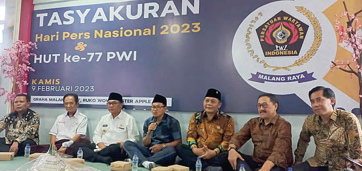 masyarakat. Dengan penguatan literasi berdemokrasi yang berwibawa,” terang Sutiaji, saat menghadiri tasyakuran peringatan Hari Pers Nasional (HPN) 2023 di Mako PWI, Jalan Raya Sawojajar Ruko WOW Cluster Apple, Kecamatan Kedungkandang, Kota Malang, Kamis (9/2). “Di hari istimewa ini, kami ingin menunjukkan keprihatinan dan kepedulian atas bencana