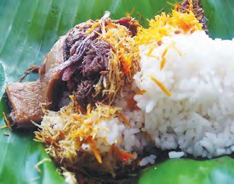 Nasi krawu merupakan kuliner khas yang terdiri dari nasi, daging suwir, jeroan sapi dilengkapi serundeng, dan sambal terasi ataupun sambal petis. Biasanya disajikan memakai daun pisang. Makanan yang sangat mudah ditemui di Kabupaten Gresik ini memiliki rasa yang lezat dengan aroma khas.