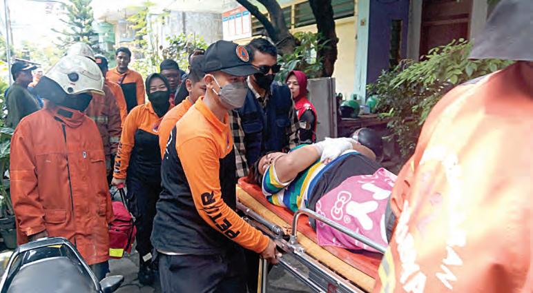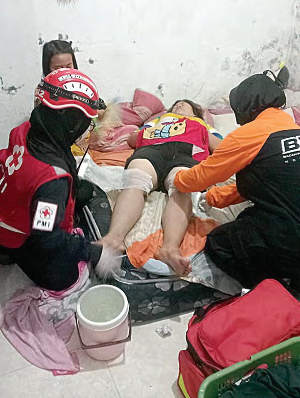 Korban terluka bakar ditangani petugas.