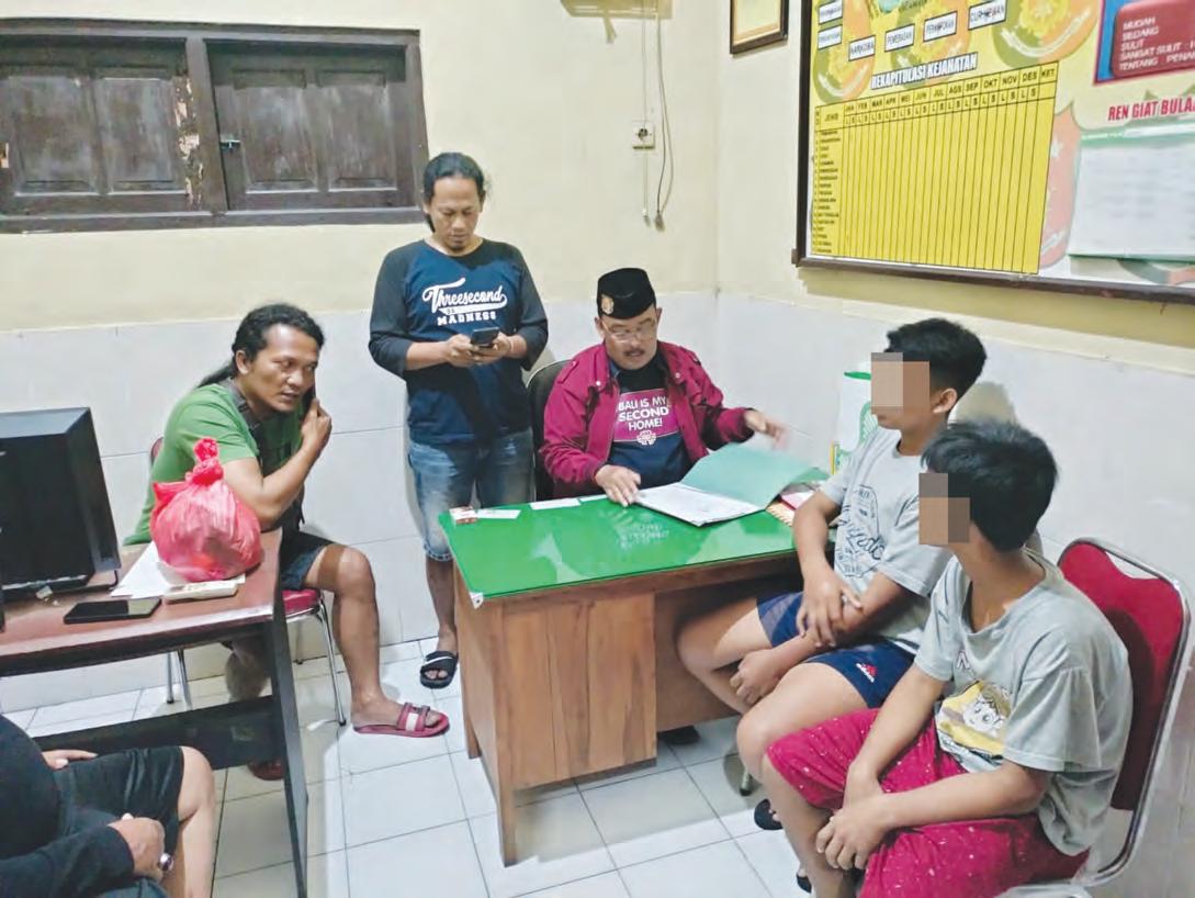 Dua bocah terduga pelaku pembobolan Kantor J&T diinterogasi tim Jaka Tingkir Polres Lamongan di Mapolsek Turi.