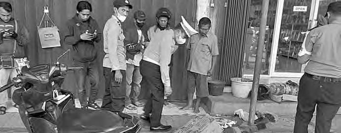 HP Demak Jaya Dibekuk Sasar Wanita Surabaya, Memorandum Mochamad (25), penjambret asal Demak Jaya, yang biasa beroperasi di Jalan Indrapura dibekuk anggota Jatanras Polrestabes Surabaya di Jalan Kalianak Timur. Selain itu juga polisi juga mengamankan Suzuki Satria yang digunakan sebagai sarana dan dua HP. Guna penyidikan lebih lanjut, kini pemuda asal Demak Bersambung ke halaman 11 Pamit Keponakan Ingin Mati Bersambung ke halaman 11 Bersambung ke halaman 11 SAKIT MENAHUN, PASUTRI GERSIKAN BAKAR DIRI Surabaya, Memorandum Habis sudah kesabaran Suwono alias Mbah Joyo menahan penyakit darah tinggi yang dialami sejak beberapa tahun lalu. Kakek 83 tahun itu akhirnya memutuskan untuk mengakhiri hidup dengan terjun ke sumur di depan rumah tetangganya di Jalan Ploso Bogen 33, Minggu (18/12) malam. Bahkan, tiga hari sebelumnya, korban pernah mengatakan kepada keponakan ingin cepat meninggalkan dunia. Kapolsek Tambaksari Kompol Ari Bayuaji mengatakan, jenazah Mbah Joyo kali pertama ditemukan Nety Handayani, tetangga yang tinggal di kos sebelah rumah korban. Saksi (Nety) kemudian memberitahuKasatreskoba Polres Pelabuhan Tanjung Perak AKP Hendro Utaryo dan barang bukti yang disita. Karyawan Ekspedisi Edarkan Sabu dan Ekstasi Sewa Rumah untuk Timbang Narkotika FOTO: MEMORANDUM/DANNY FOTO: MEMORANDUM/ALFIN FOTO: MEMORANDUM/RIO Petugas mengevakuasi pasutri yang melakukan percobaan bunuh diri dan lokasi kejadian. Bersambung ke halaman 11 FOTO: MEMORANDUM/DANNY Petugas medis menolong korban tabrakan truk. 3 Kendaraan Tabrakan Beruntun di Benowo Sopir Ngantuk, Seruduk Truk Antre BBM FOTO: MEMORANDUM/RIO