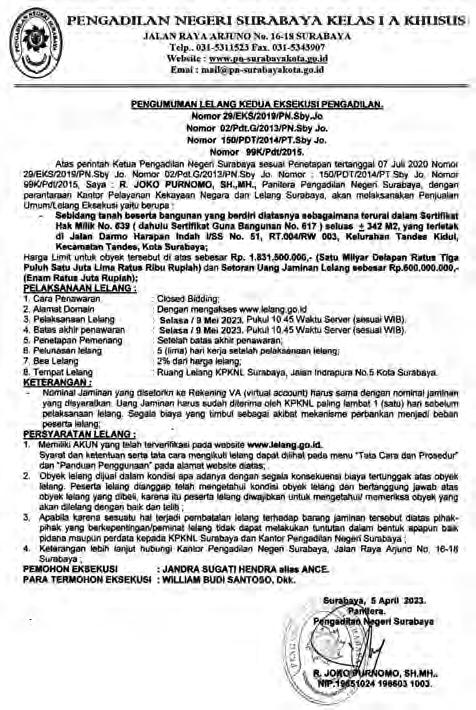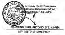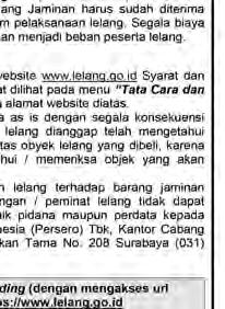 P E N G U M U M A N (Tentang Sertipikat Hilang) No. 413 /35.09.100/II/2023 No Nama Alamat Pemohon Hak Atas Tanah Jenis dan Nomor Hak NIB/Luas Terdaftar Atas Nama Tanggal Pembukuan /Pengeluara n Letak Tanah a. Jalan b. Desa/Kel c. Kecamatan Keterangan 1 Nama : YULI KURNIAWAN Pekerjaan Karyawan Honorer Alamat : Dusun Krajan RT/002, RW/002 Kel/Desa Arjasa Kecamatan : Arjasa Kab./Kota Jember Hak Milik No 839/Arjasa 00573/1489 m² 1. HARTINAH RESTU WARDANI 2. YULIA KURNIAWAN 24-05-2016 b. Arjasa c. Ajasa 1. Surat Keterangan Laporan Kehilangan No.SKTLKBS/7659/IX/YAN.2.4./2021. SPKT Polres Jember Tanggal 22-09-2021 2. Surat Pernyataan Janji dibawah Sumpah tanggal 17-02-2023 Dalam waktu 30 (tiga Puluh) hari sejak tanggalpengumuman ini, bagi mereka yang merasa keberatan dapat mengajukan keberatan-Keberatan Kepada kami dengan disertai bukti dan alasan yang kuat. Jika setelah 30 (tiga puluh) hari tidak ada lagi keberatan terhadap permohonan penggantian sertipikat tersebut diatas, maka sertipikat pengganti akan diterbitkan dan berlaku sah menurut hukum dan sertipikat yang dinyatakan hilang tidak berlaku lagi.