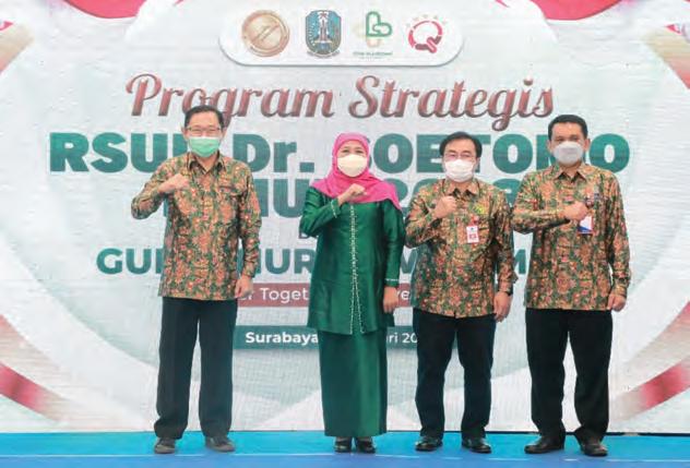 Didampingi Direktur RSUD dr Soetomo dr Joni Wahyuhadi dan Kadinkes Jatim dr Erwin Ashta Triyono, Gubernur Jawa Timur Khofifah Indar Parawansa meluncurkan Soetomo Vendor Management System (Soetomo Vemes), Information Technology (IT) Mandiri, Soetomo Revenue Center serta Bangun Serah Guna Hostel.