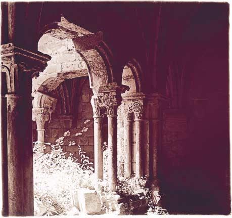 AGUILAR DE CAMPOO(Palencia). Claustro del Monasterio de Santa María la Real. [En ruinas tras la extracción de capiteles para el Museo Arqueológico Nacional]. V-12-23