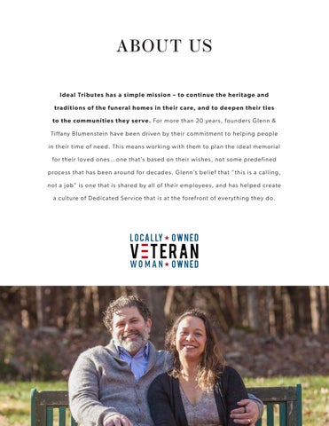 Ideal Tributes has a simple mission – to continue the heritage and traditions of the funeral homes in their care, and to deepen their ties to the communities they serve. For more than 20 years, founders Glenn & Tiffany Blumenstein have been driven by their commitment to helping people in their time of need. This means working with them to plan the ideal memorial for their loved ones…one that’s based on their wishes, not some predefined process that has been around for decades. Glenn’s belief that “this is a calling, not a job” is one that is shared by all of their employees, and has helped create a culture of Dedicated Service that is at the forefront of everything they do.