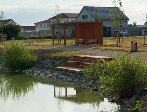 In their design the students considered the full spectrum of park users, from children and families with prams, to dogwalkers, young couples, and senior citizens. The goal was to create a space that would be lively, functional, and comprehensible for everyone. The new Na Zahajce Park contains a relaxation zone around a pond featuring a dock, a children’s playground, a workout park, a football pitch, a firepit, a pear orchard, and a forest park. “The park is already complete. It was finished in May 2025. First the paths were completed, then furniture and small structural elements such as stairs were added, and it was completed with a gazebo and a screen around a gas well. Then trees and bushes were planted. All that was left was to plant grass,” says Krejčiřík. The overall costs of building the garden exceeded 20 million Kč.