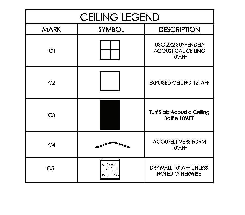 Acoustical ceiling panels are used to help with noise absorbtion in the open office. It is also used to ground the space and have a visual separation from the rest of the room.