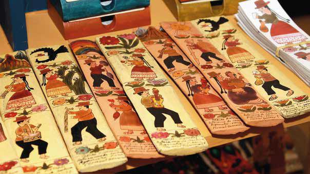 El trazo amarillo perenniza el patrimonio cultural representando la alegría de sus danzas y la energía de quienes participan.