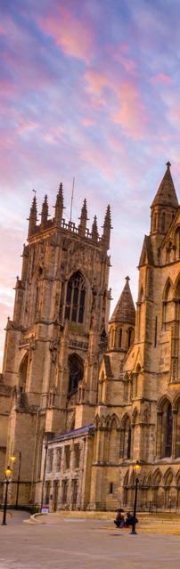Wizytówką Yorku jest królująca nad miastem gotycka katedra. Ukończona w 1472 roku, katedra wybudowana została na planie krzyża. Ma ona 160 metrów długości oraz 76 metrów szerokości. Wieże zachodnie katedry mierzą po 56 metrów a wieża środkowa 71 metrów.